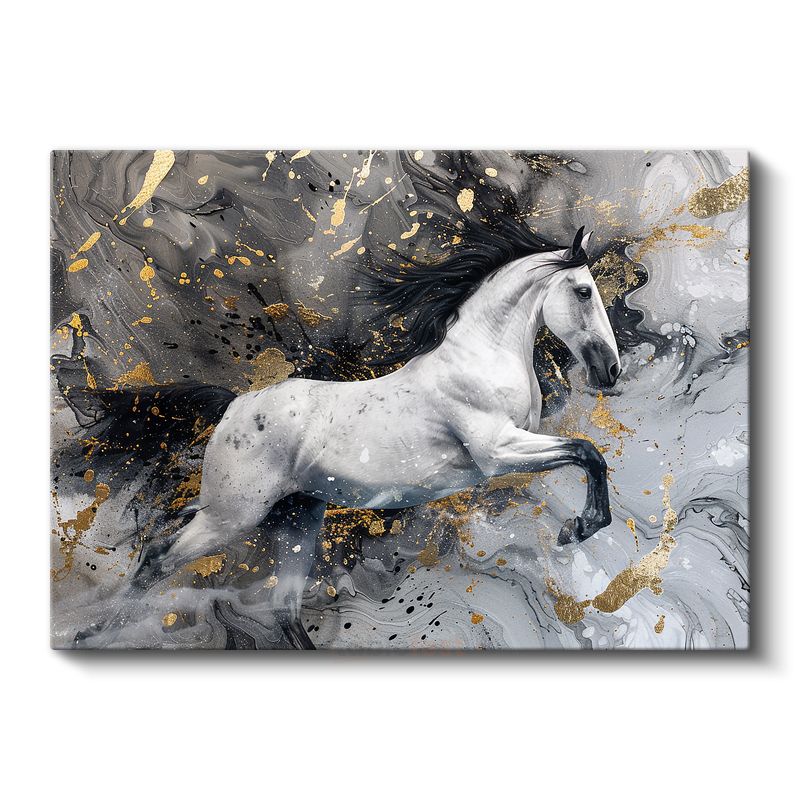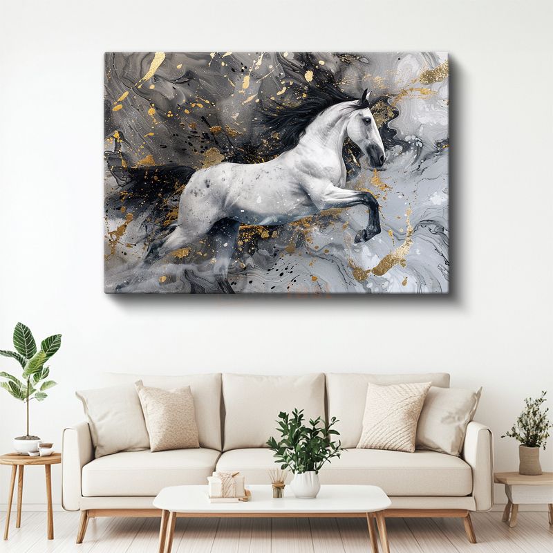 Beyaz Atın Dansı - Gümüş Dalgalar Arasında Zarafet Kanvas Tablo