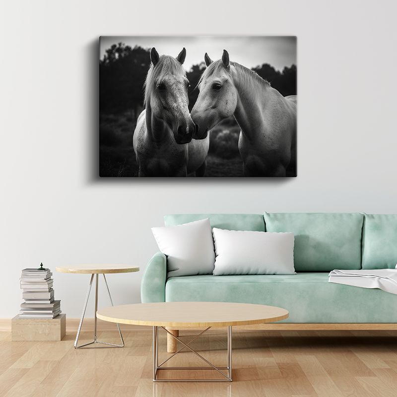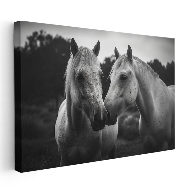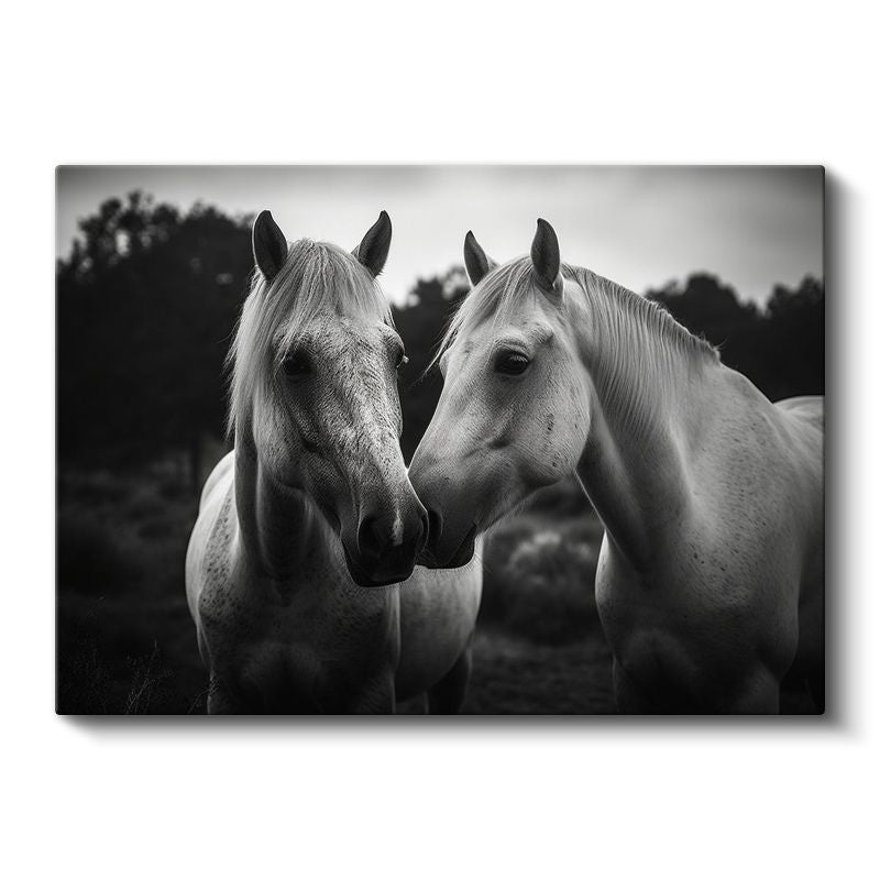 Beyaz Atlar - Dostluğun Zarif Buluşması Kanvas Tablo