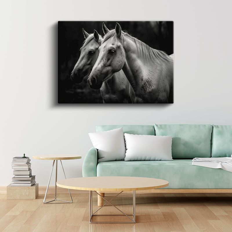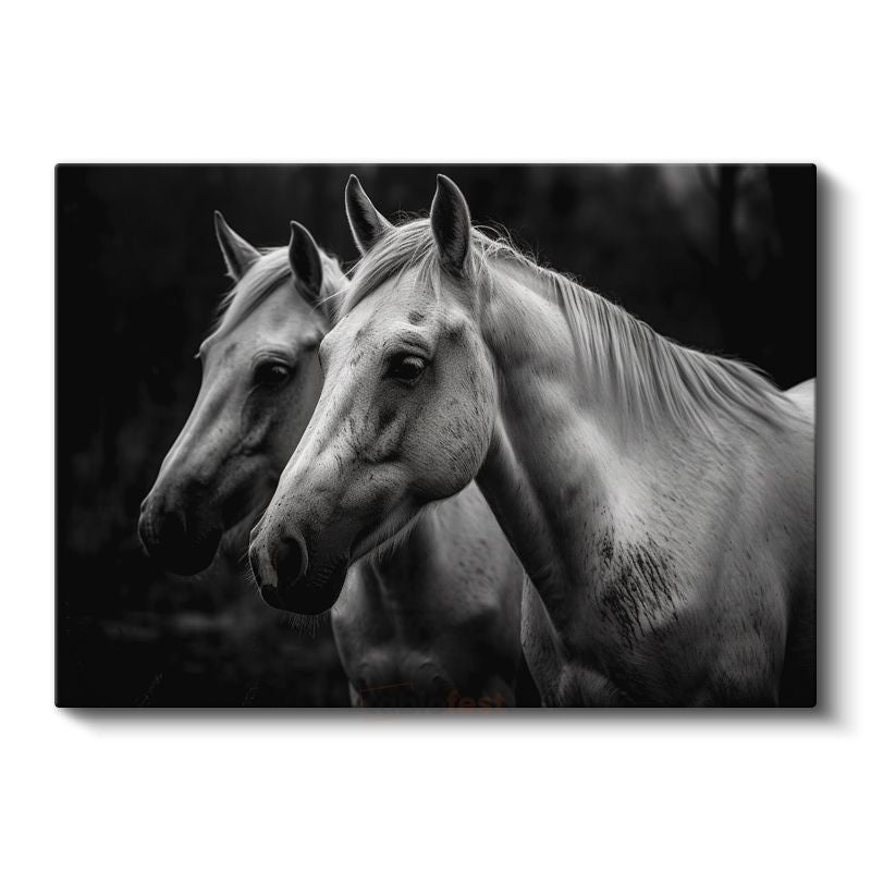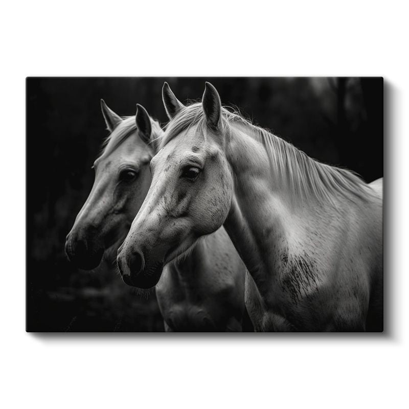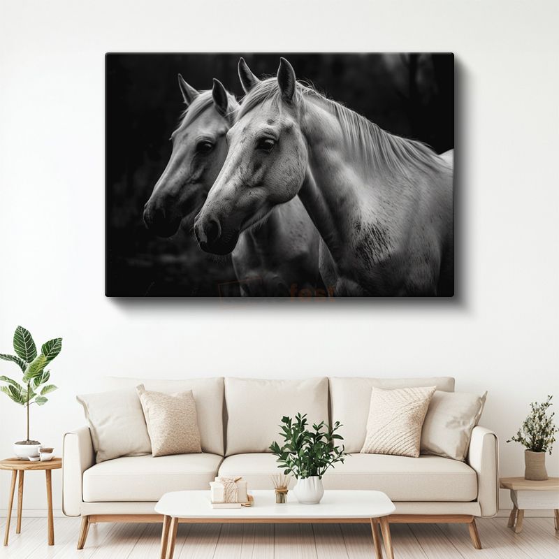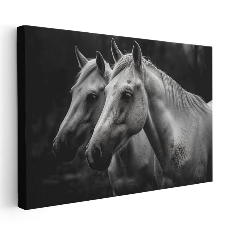 Beyaz Atlar - Siyah Beyaz Dostluğun Portresi Kanvas Tablo