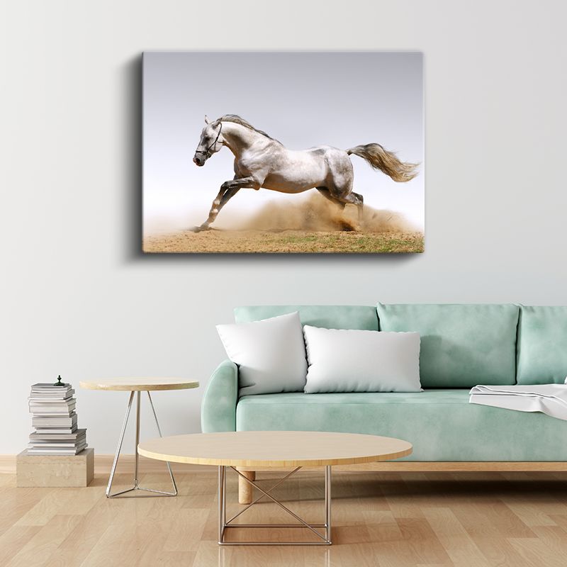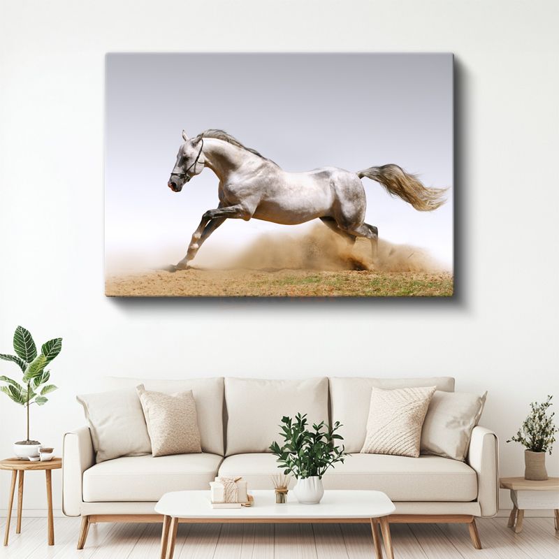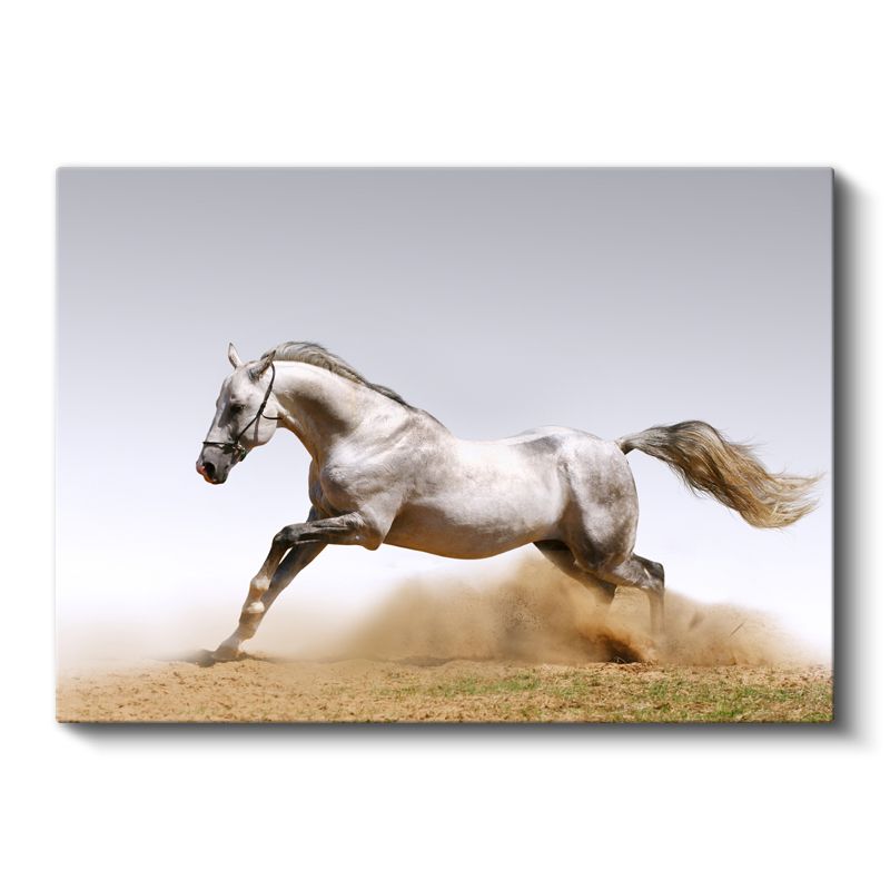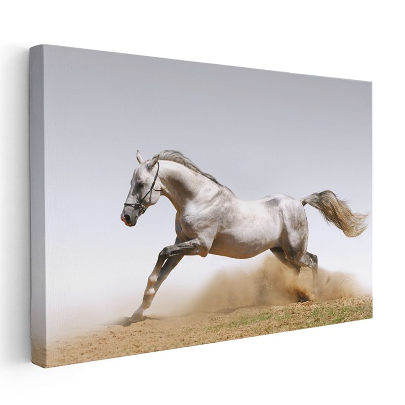 Beyaz Aygır - Tozlu Arazide Koşan Zarif At Kanvas Tablo