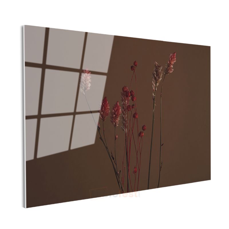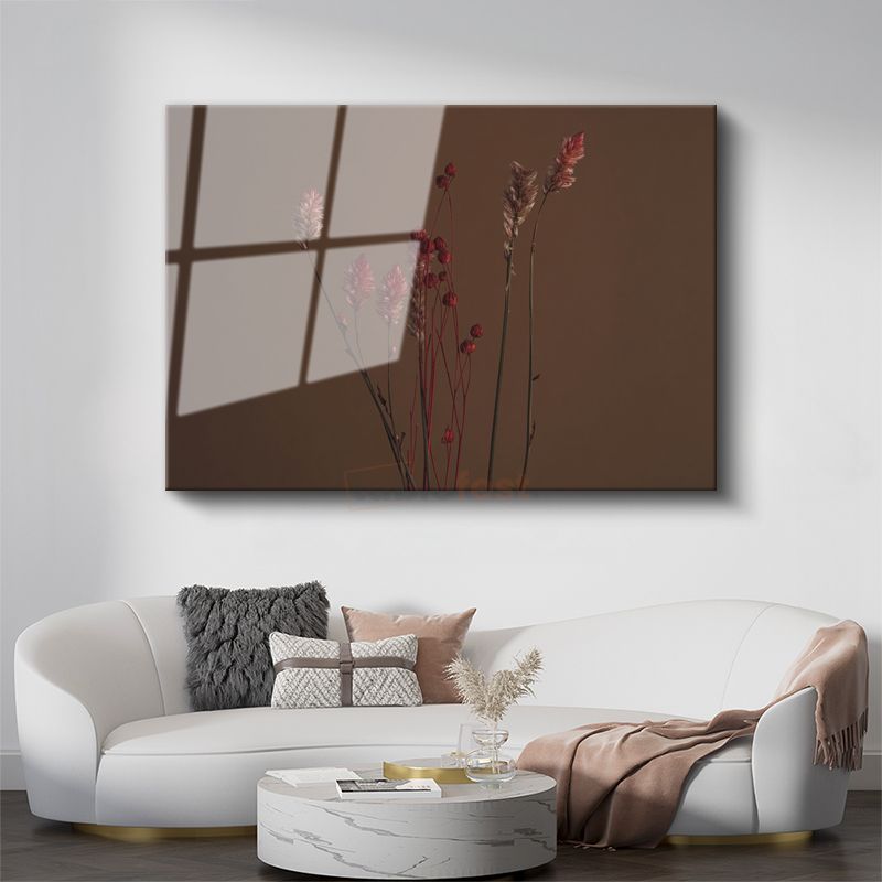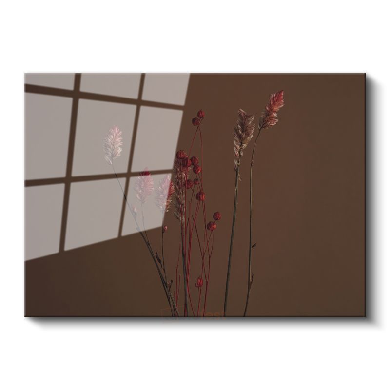 Beyaz Çiçek Ağacı - Altın Gövdeli Zarif Dekoratif Heykel Cam Tablo