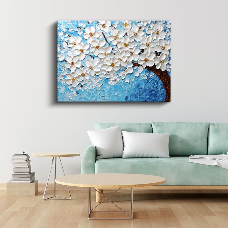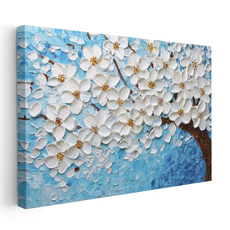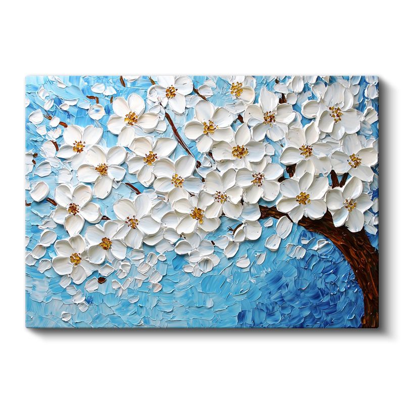 Beyaz Çiçek Ağacı - Kabartma Görünümlü Dokulu Sanat Eseri Kanvas Tablo