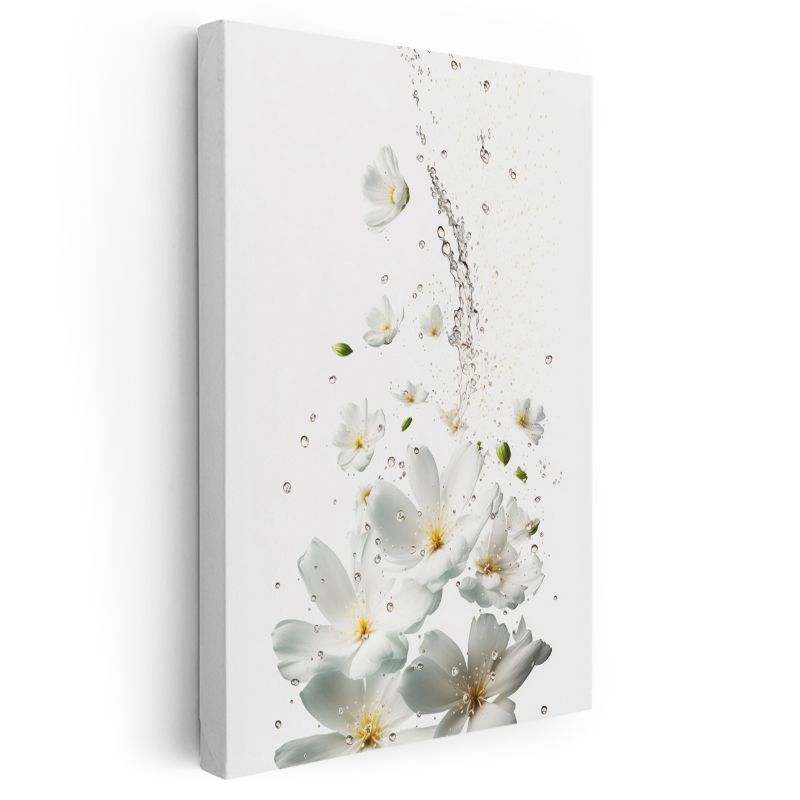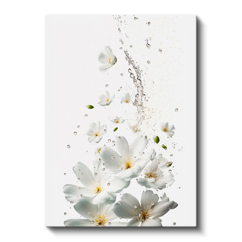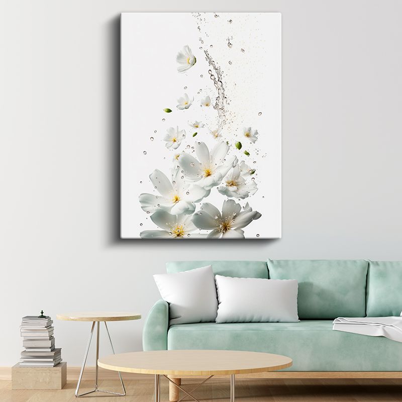 Beyaz Çiçek Sıçraması - Minimalist Su Damlacıkları Kanvas Tablo