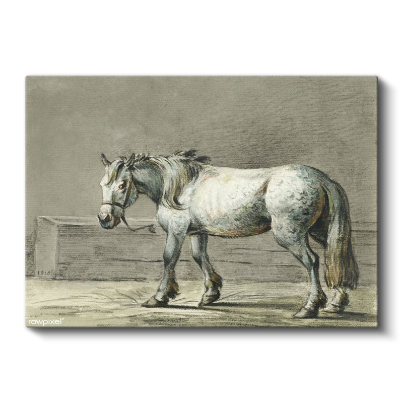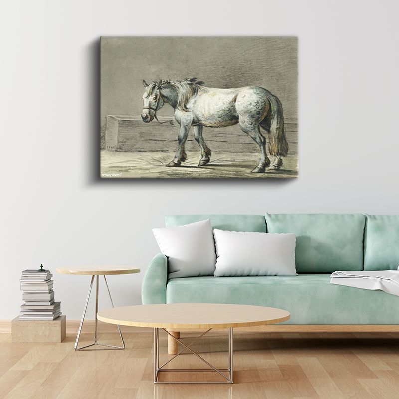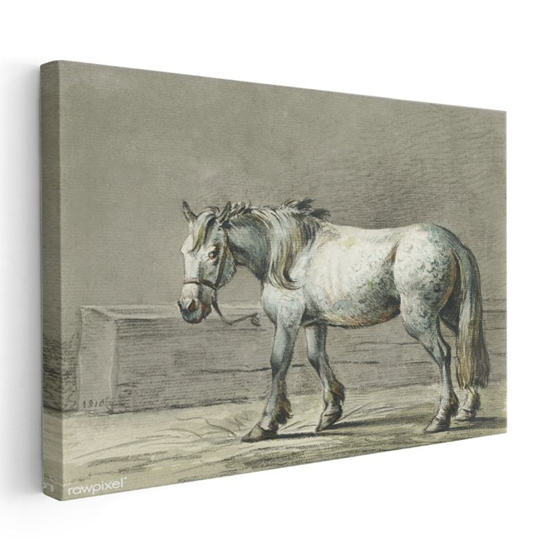 Beyaz Çiftlik Atı - Klasik Karakalem Portre Kanvas Tablo