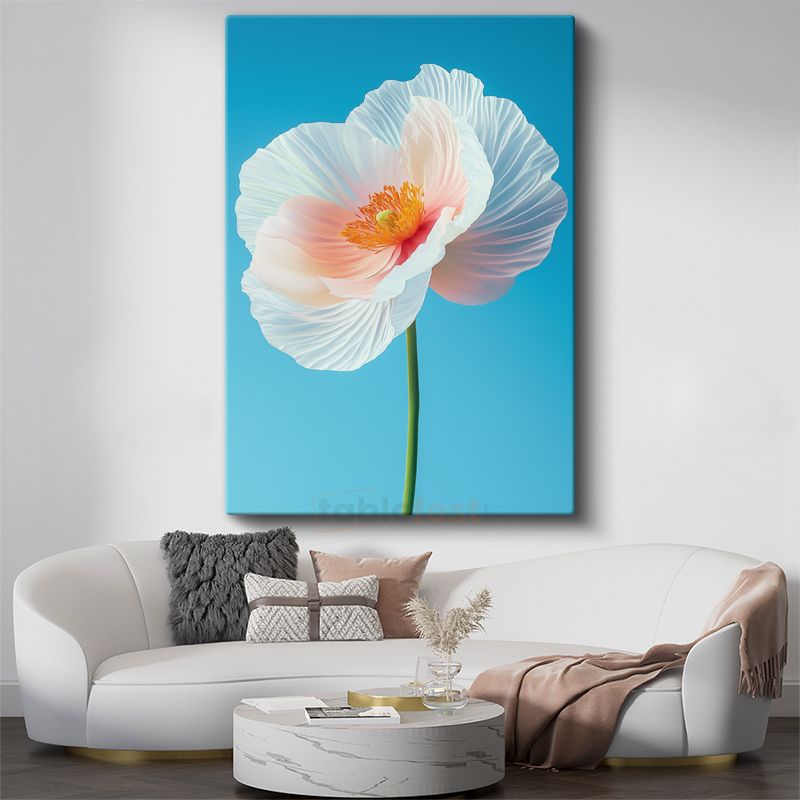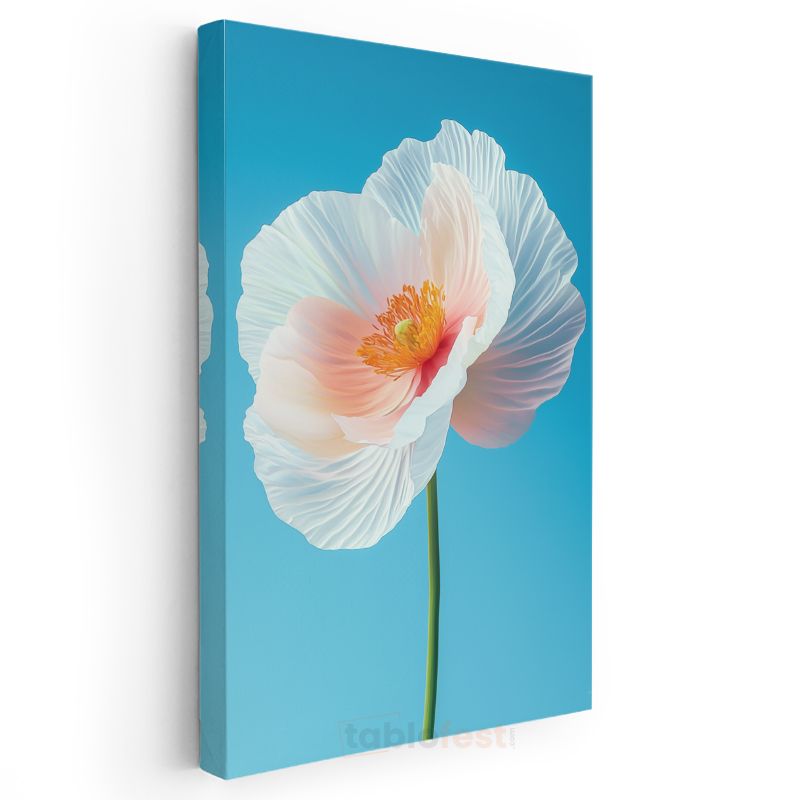 Beyaz Gelincik - Mavi Fon Üzerinde Zarif Çiçek Kanvas Tablo