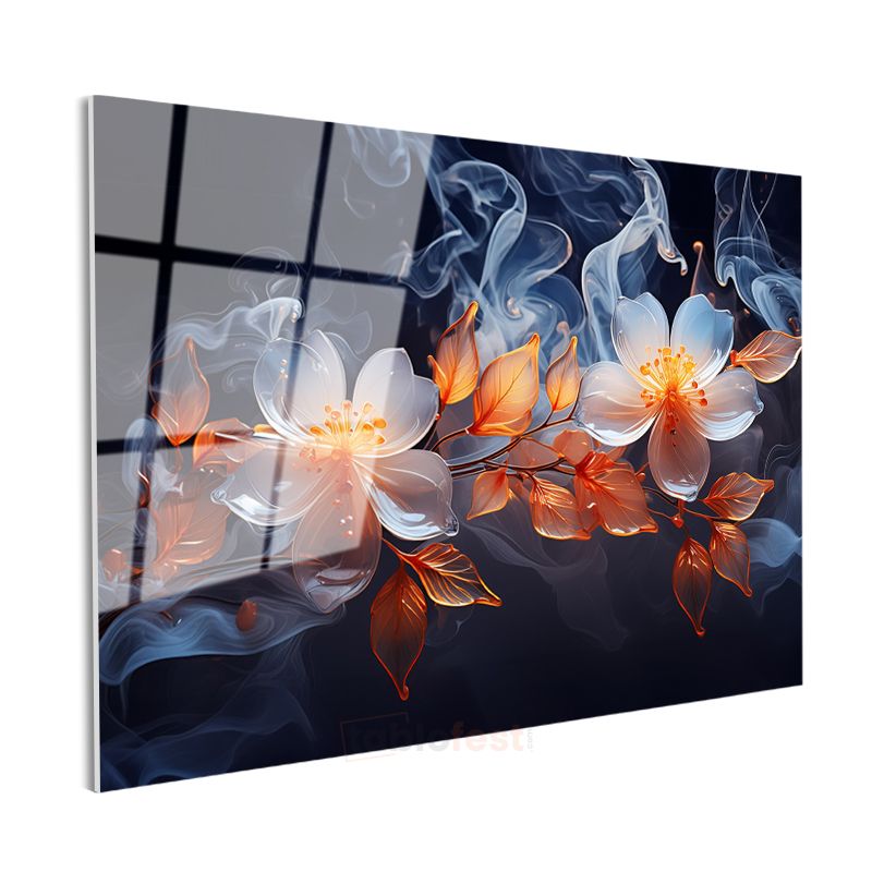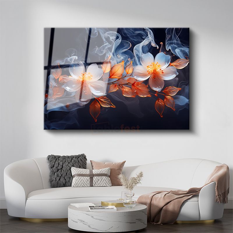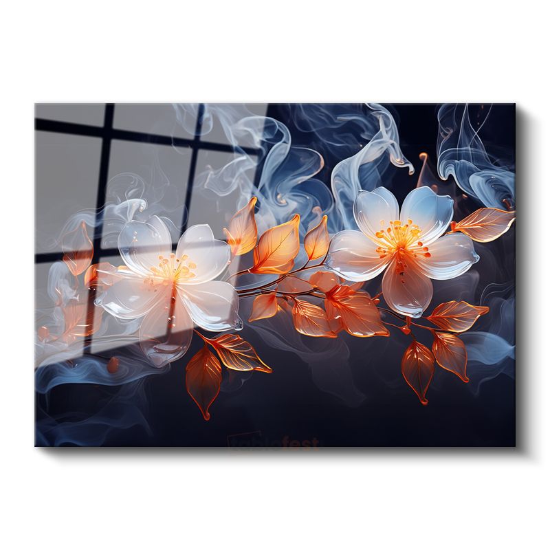 Beyaz Gelincikler - Sonbahar Tonları Cam Tablo