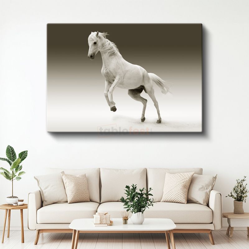 Beyaz Güzellik - Şaha Kalkan Asil At Kanvas Tablo