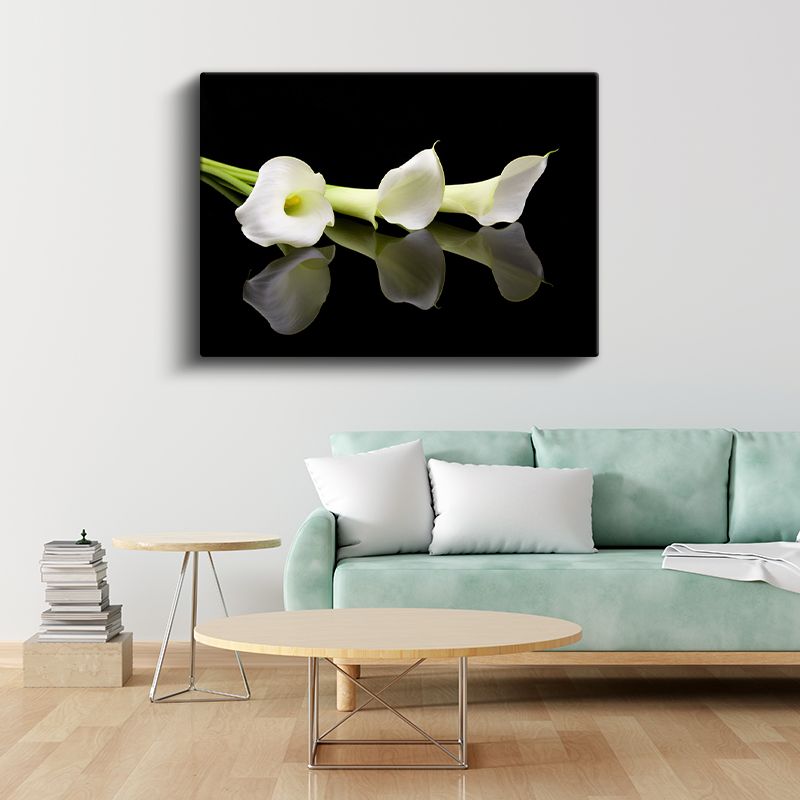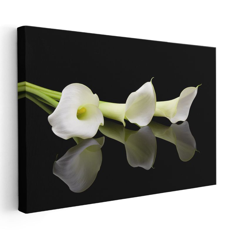 Beyaz Kalla Çiçekleri - Zarif Yansımalı Tasarım Kanvas Tablo
