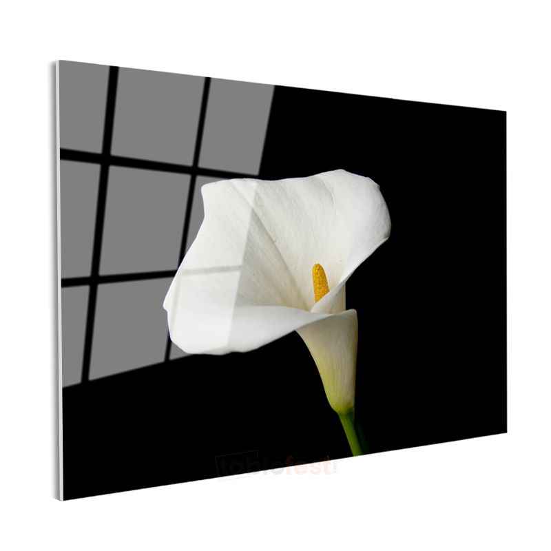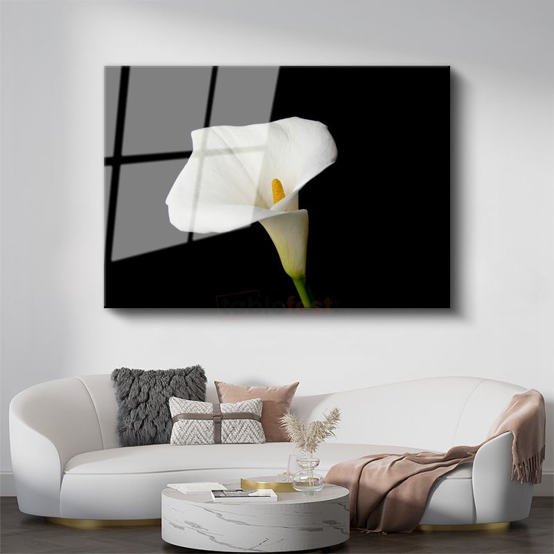 Beyaz Kalla - Siyah Fonlu Zarif Çiçek Cam Tablo