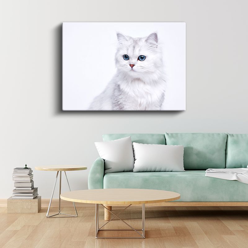 Beyaz Kedi - Mavi Gözlerin Saf Güzelliği Kanvas Tablo