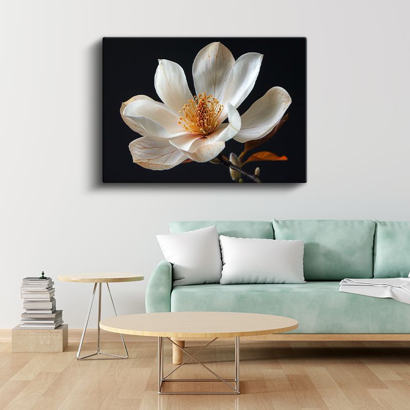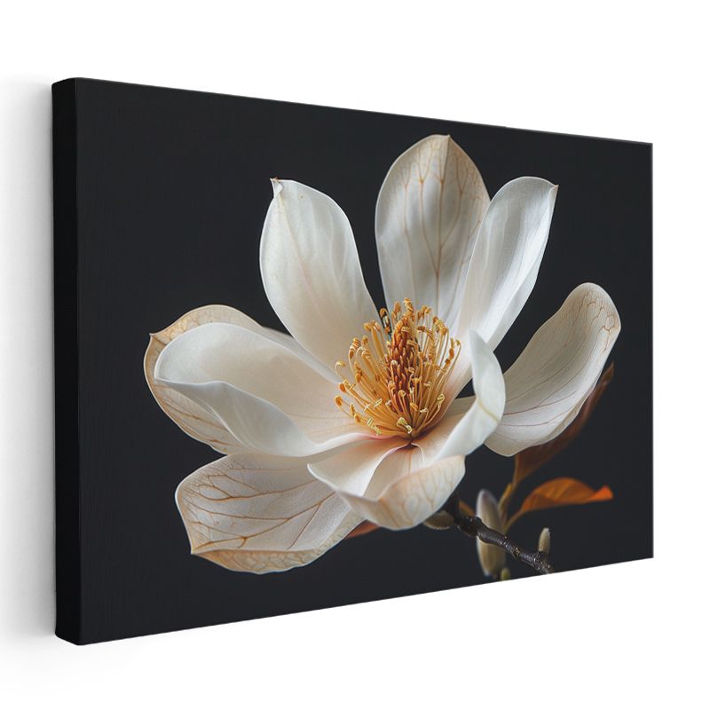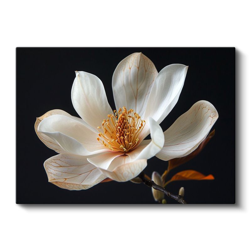 Beyaz Manolya - Altın Tozlu Zarif Çiçek Portresi Kanvas Tablo