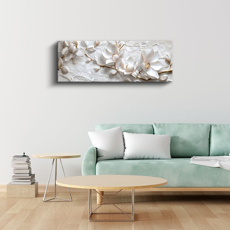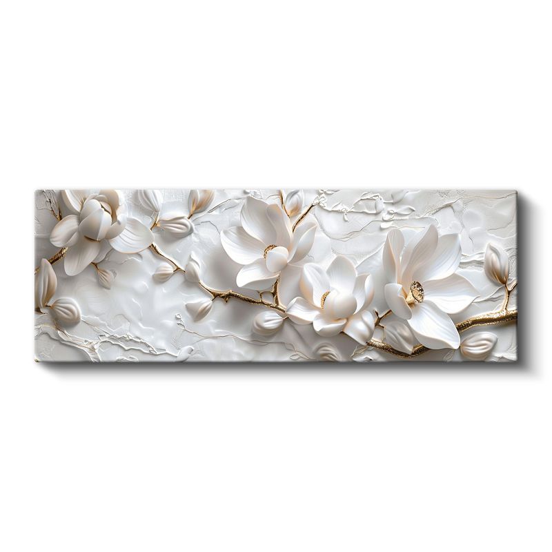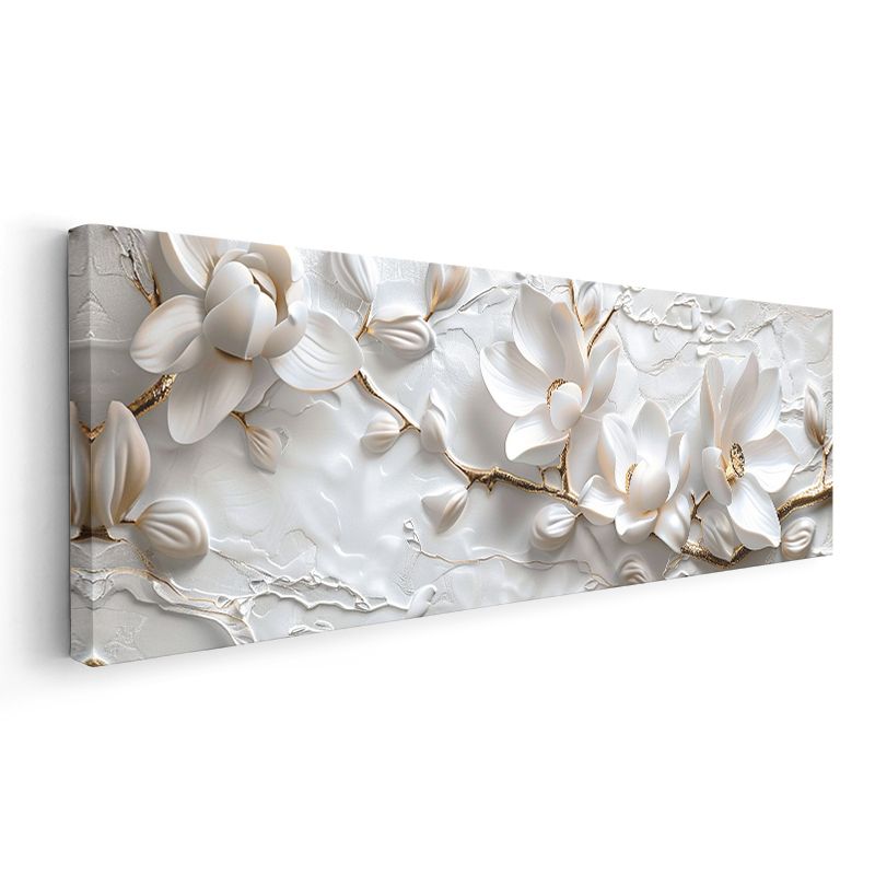 Beyaz Manolyalar - Dokulu Yüzeyde Zarif Çiçek Serisi Kanvas Tablo