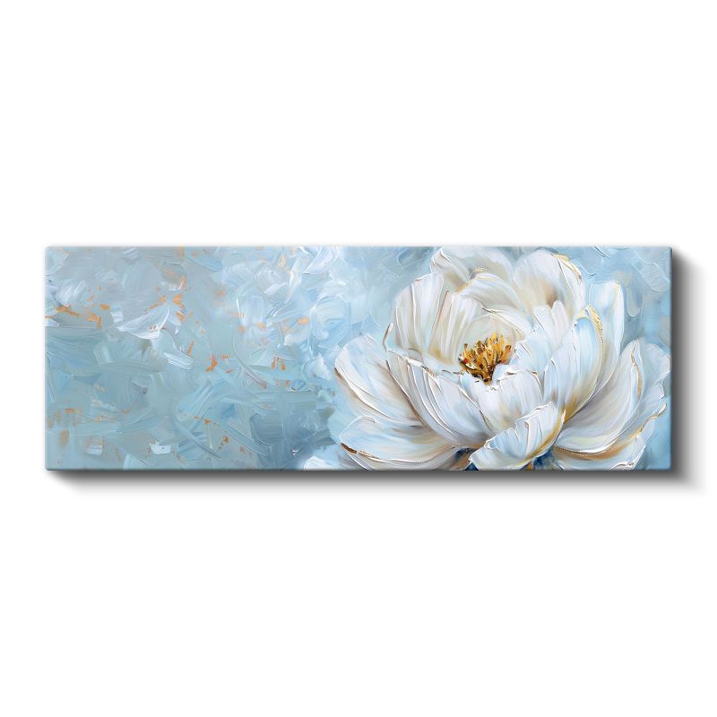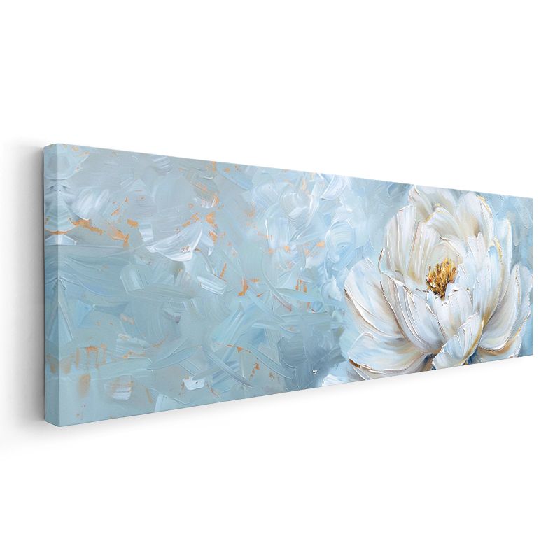 Beyaz Nilüfer - Mavi Tonlarda Minimalist Çiçek Portresi Kanvas Tablo