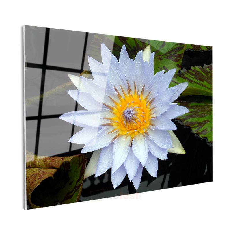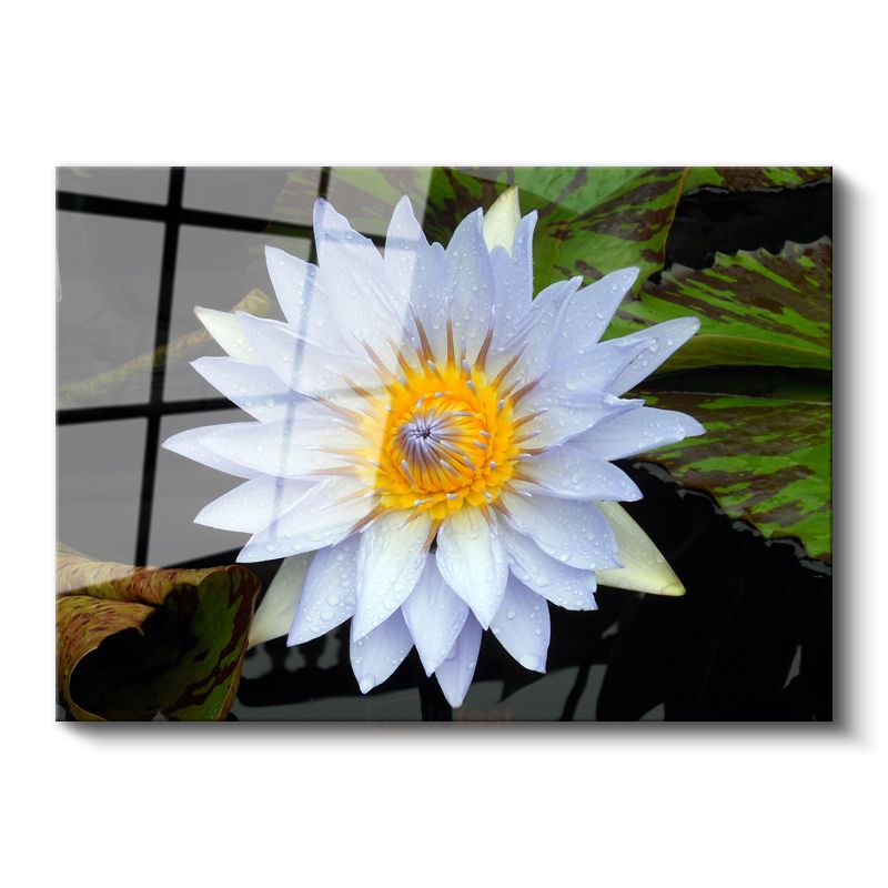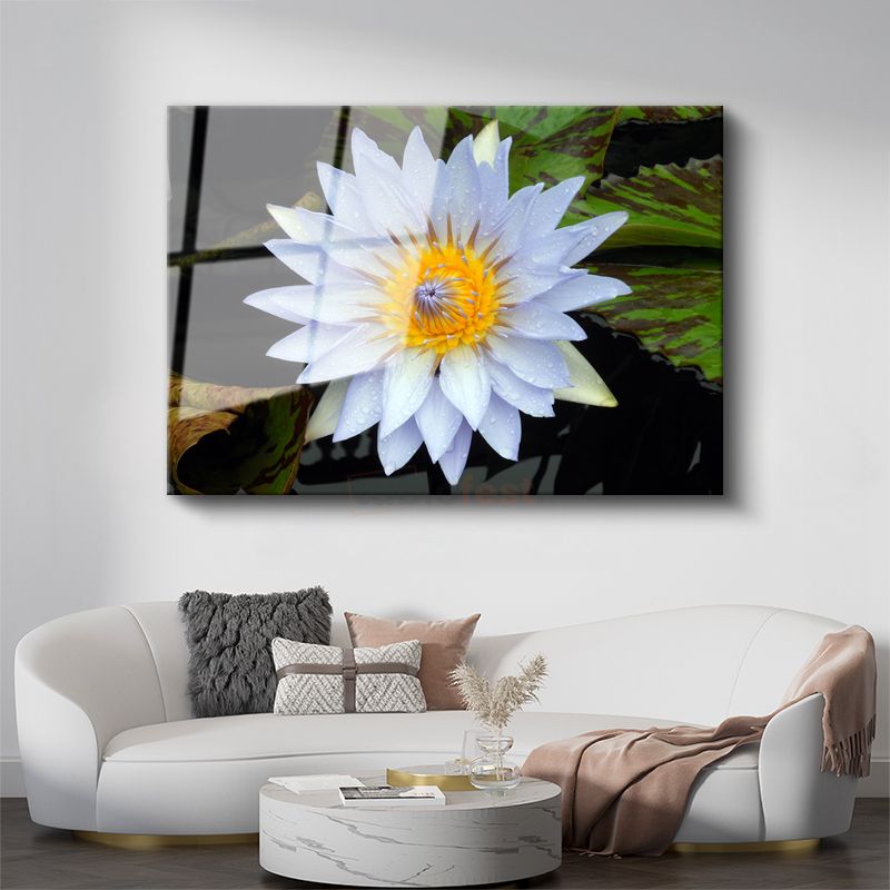 Beyaz Nilüfer - Sarı Merkezli Su Çiçeği Cam Tablo