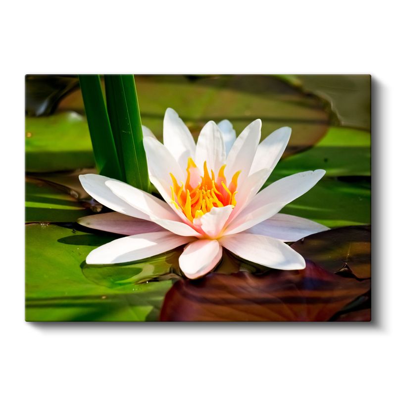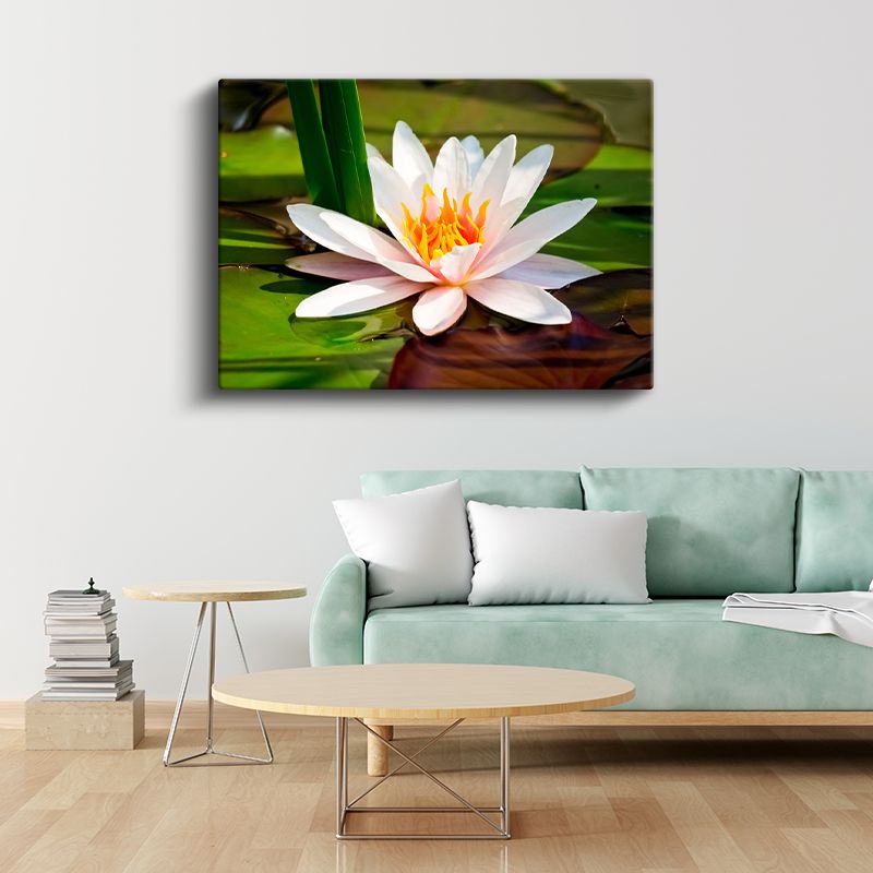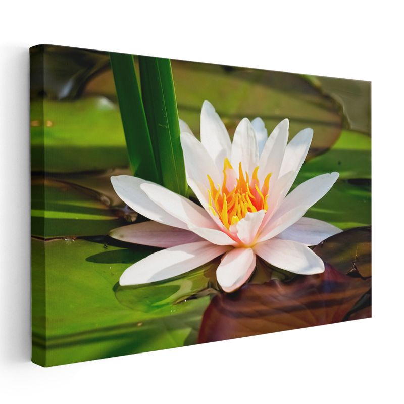Beyaz Nilüfer - Yapraklar Arasında Zarif Çiçek Kanvas Tablo