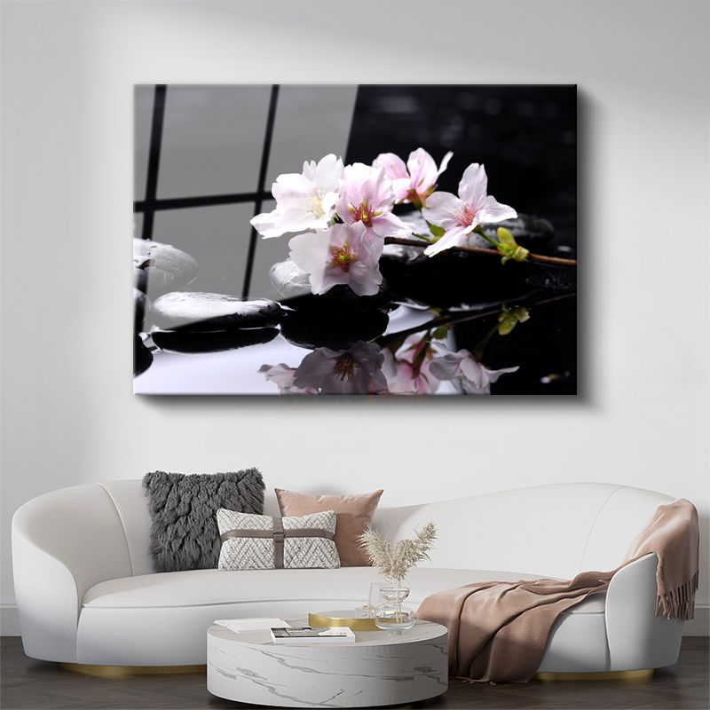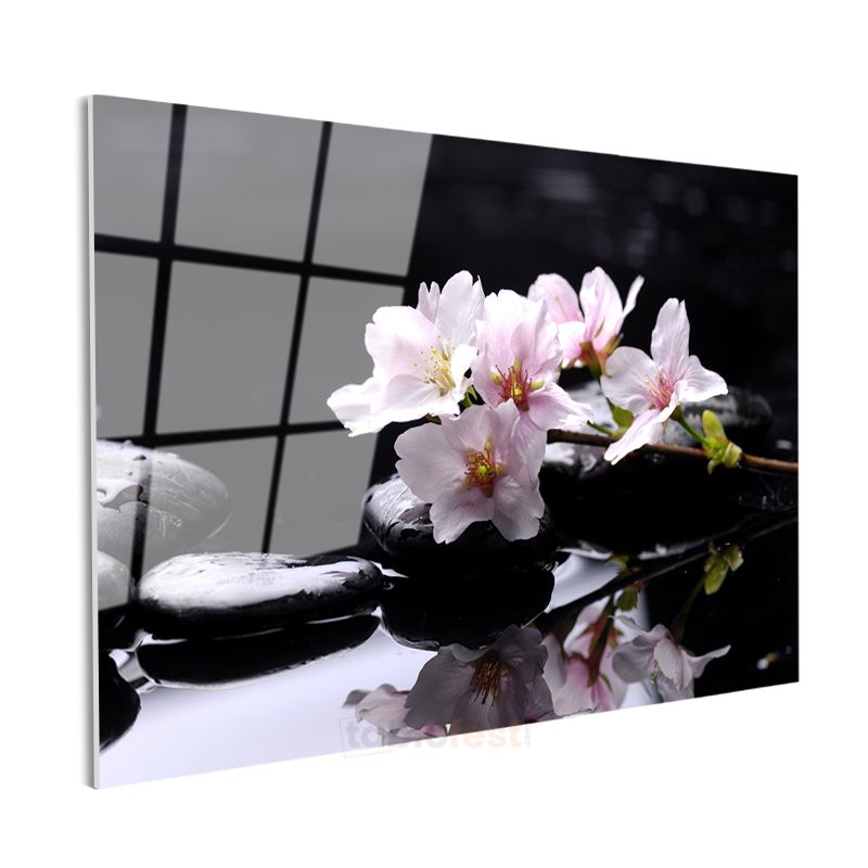 Beyaz Orkideler - Su Üzerinde Zen Tasarımı Cam Tablo