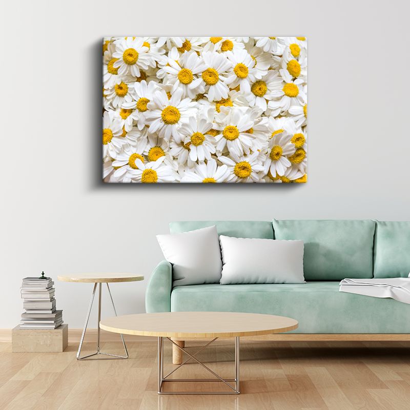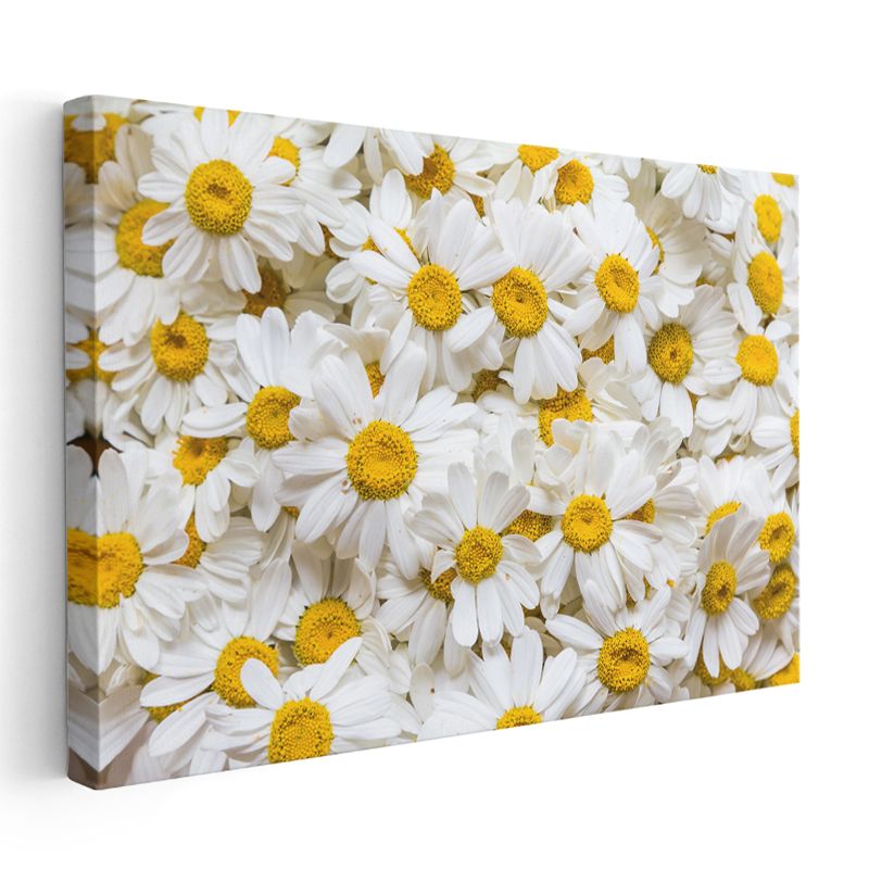 Beyaz Papatya Denizi - Altın Merkezli Saf Beyaz Çiçekler Kanvas Tablo