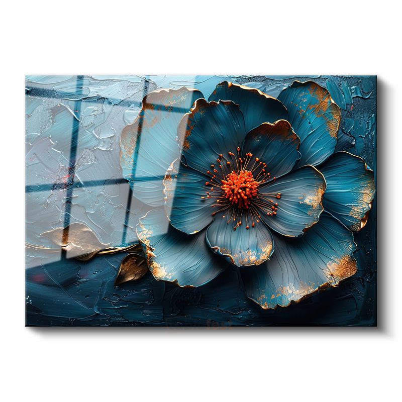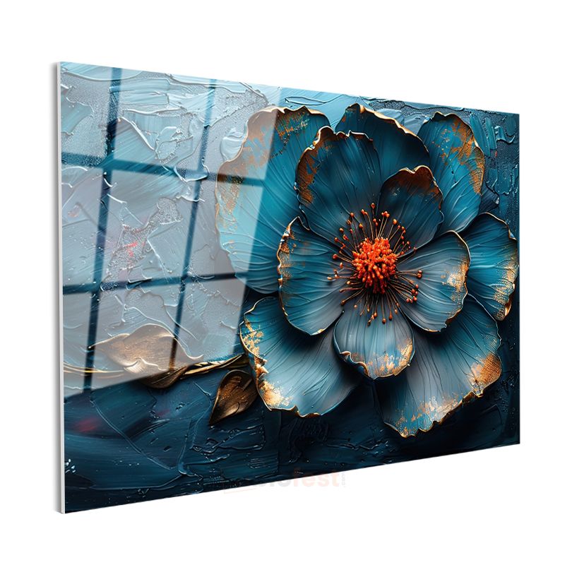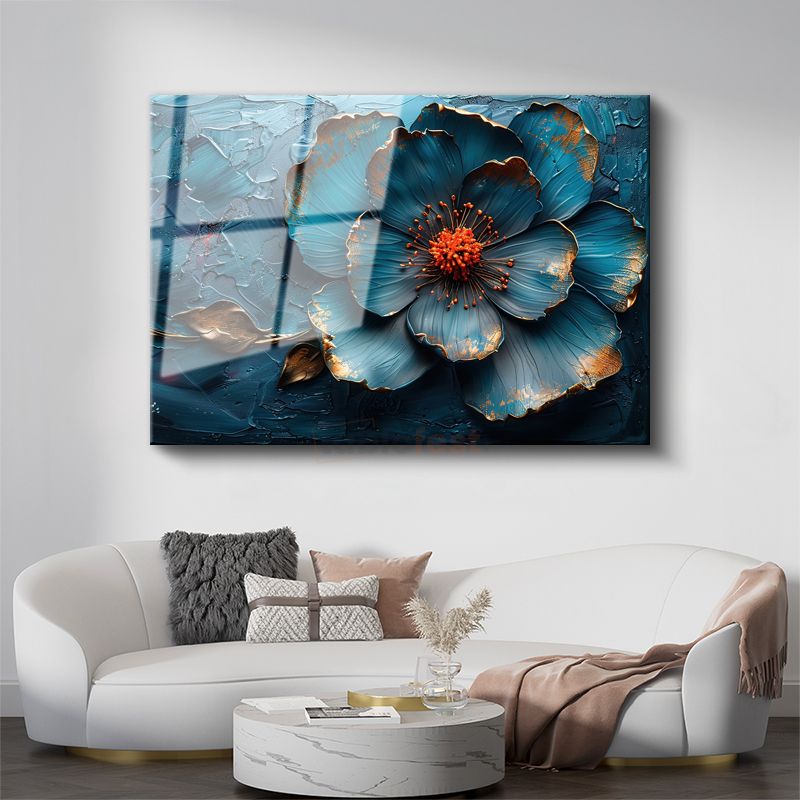 Beyaz Papatyalar - Mavi Fonda Zarif Çiçek Buketi Cam Tablo