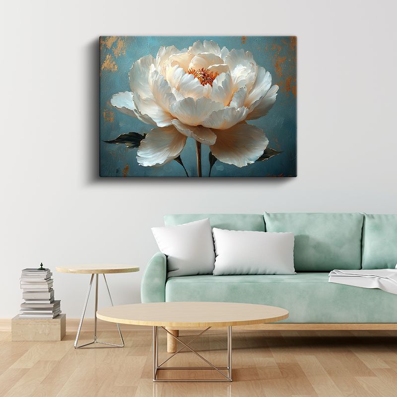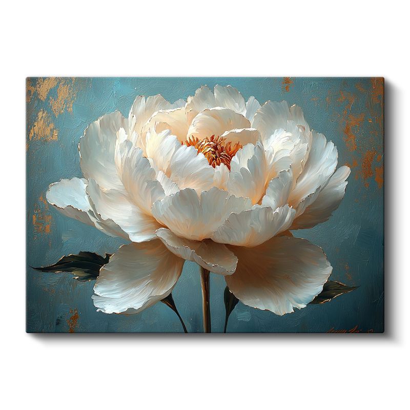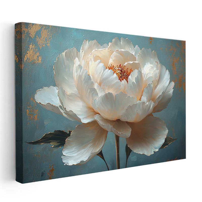 Beyaz Şakayık - Turkuaz Fonda Altın Detaylı Zarif Çiçek Kanvas Tablo