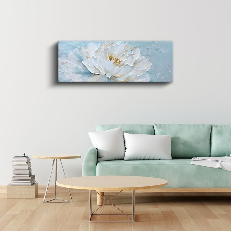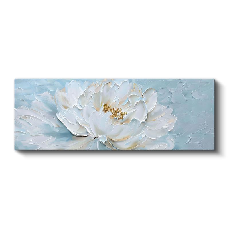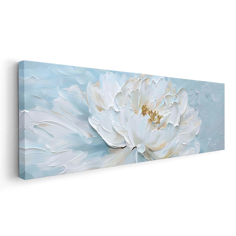 Beyaz Şakayık - Turkuaz Fonda Yağlı Boya Efektli Kanvas Tablo