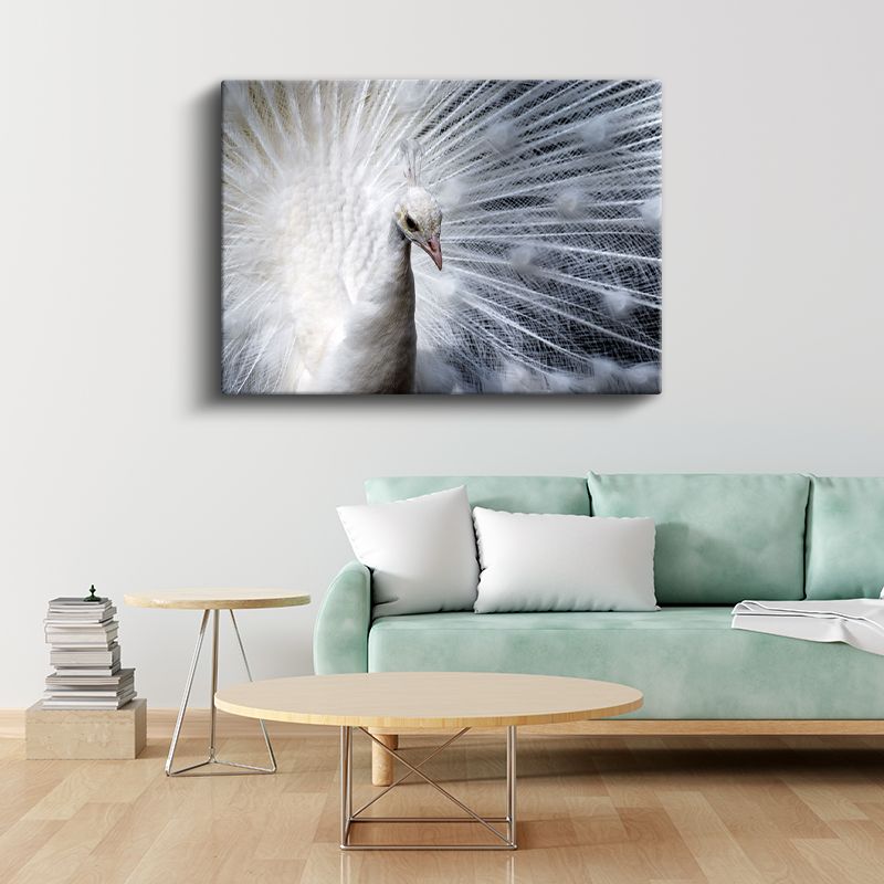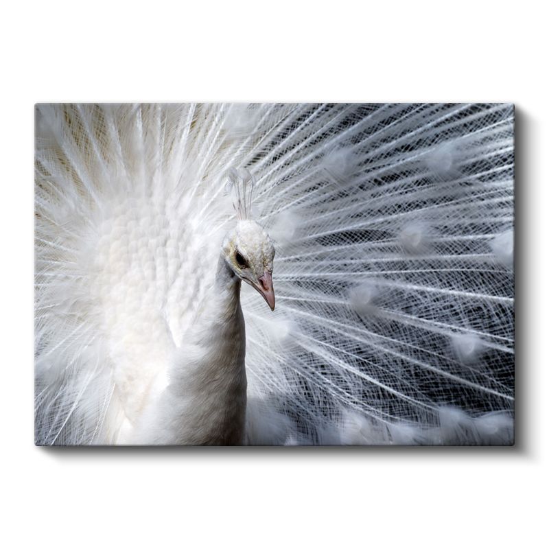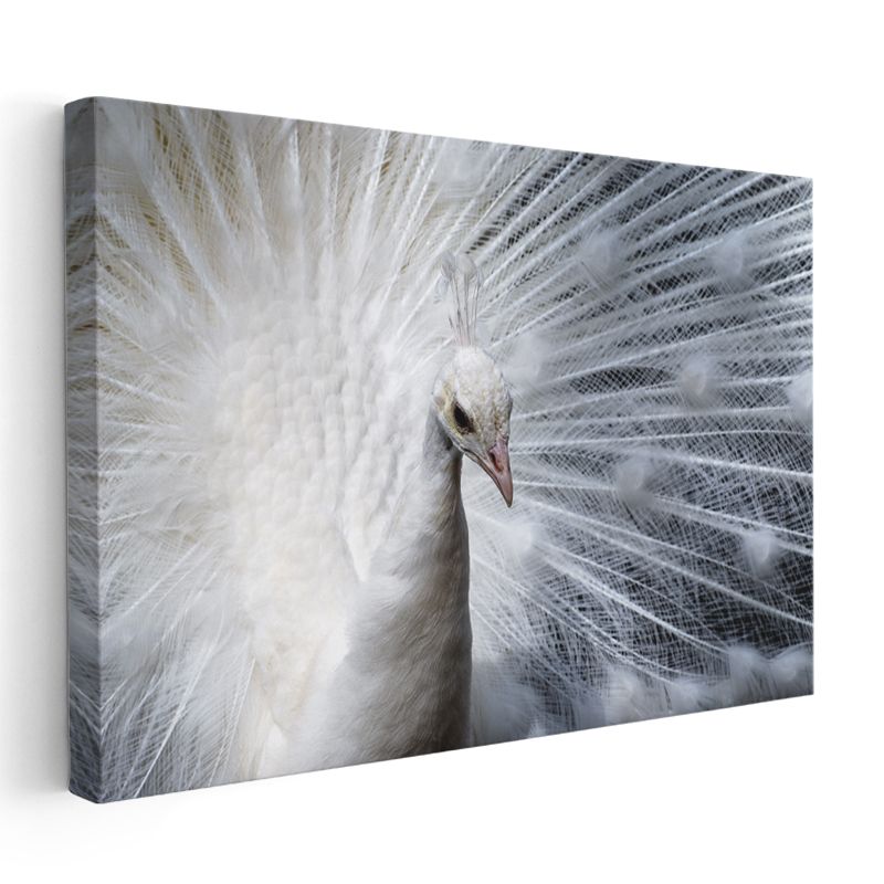 Beyaz Tavus - Açılmış Tüyleriyle Albino Güzellik Kanvas Tablo