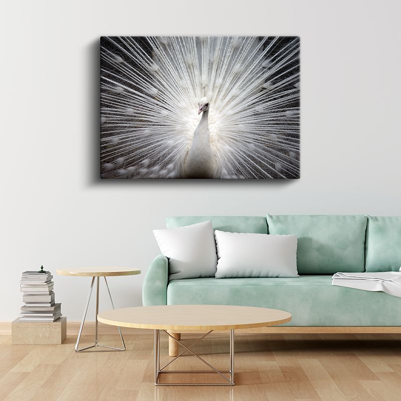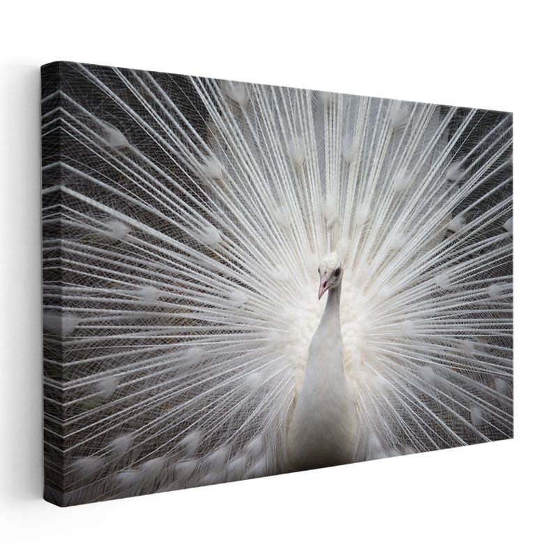 Beyaz Tavus Kuşu - Gösterişli Tüyleriyle Işıldayan Güzellik Kanvas Tablo