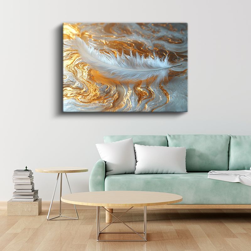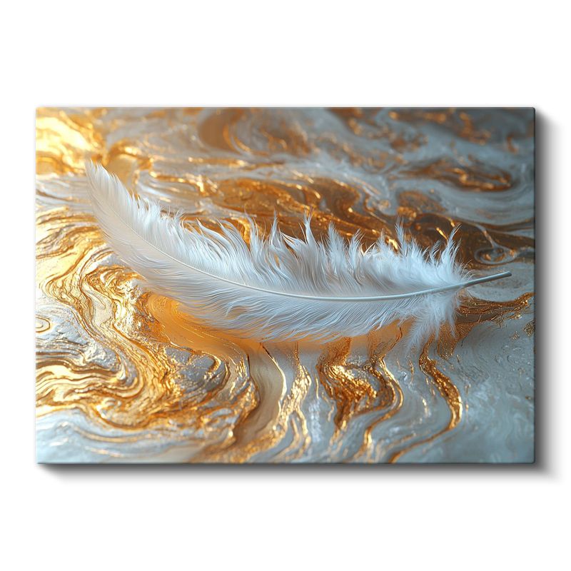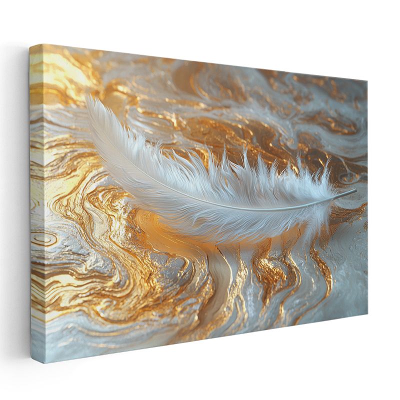 Beyaz Tüy - Altın Dalgalar Üzerinde Zarafet Kanvas Tablo
