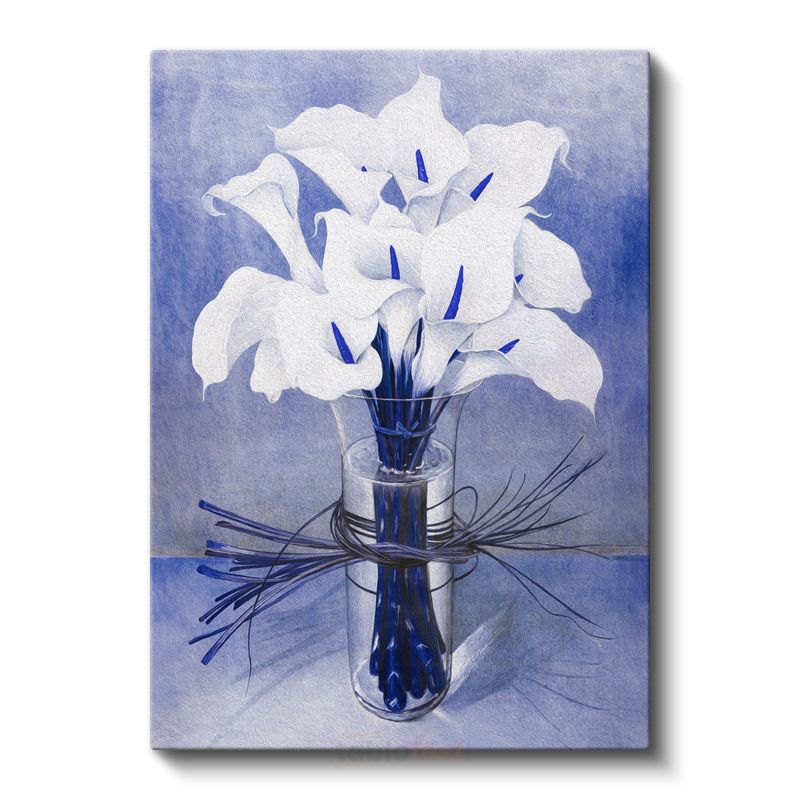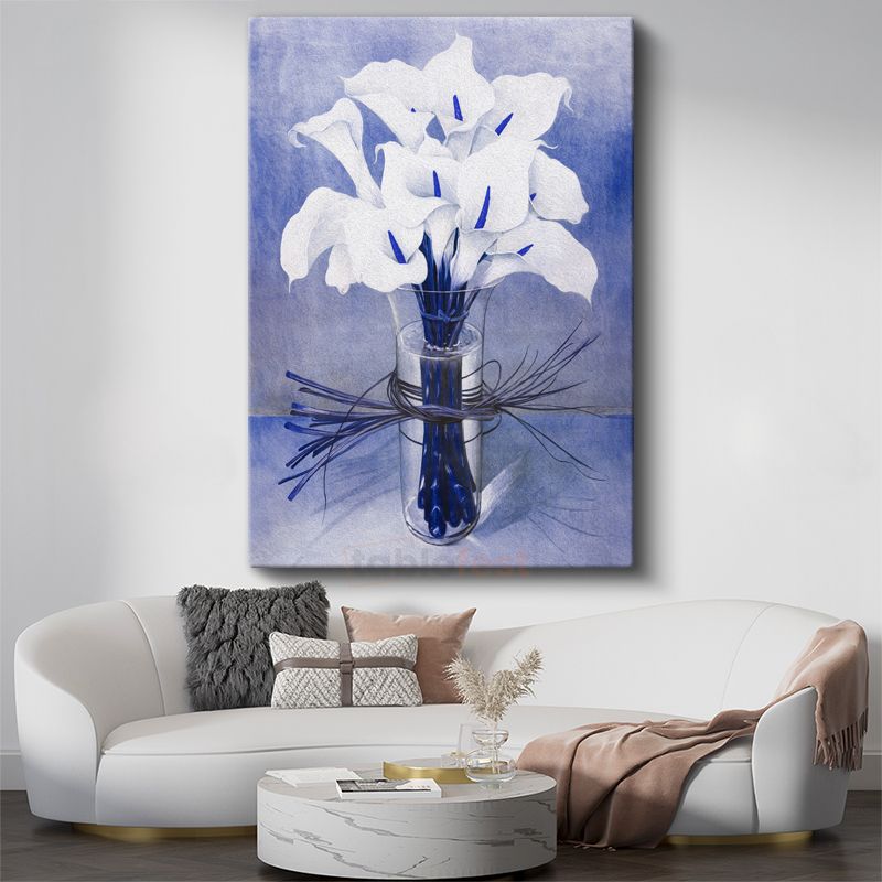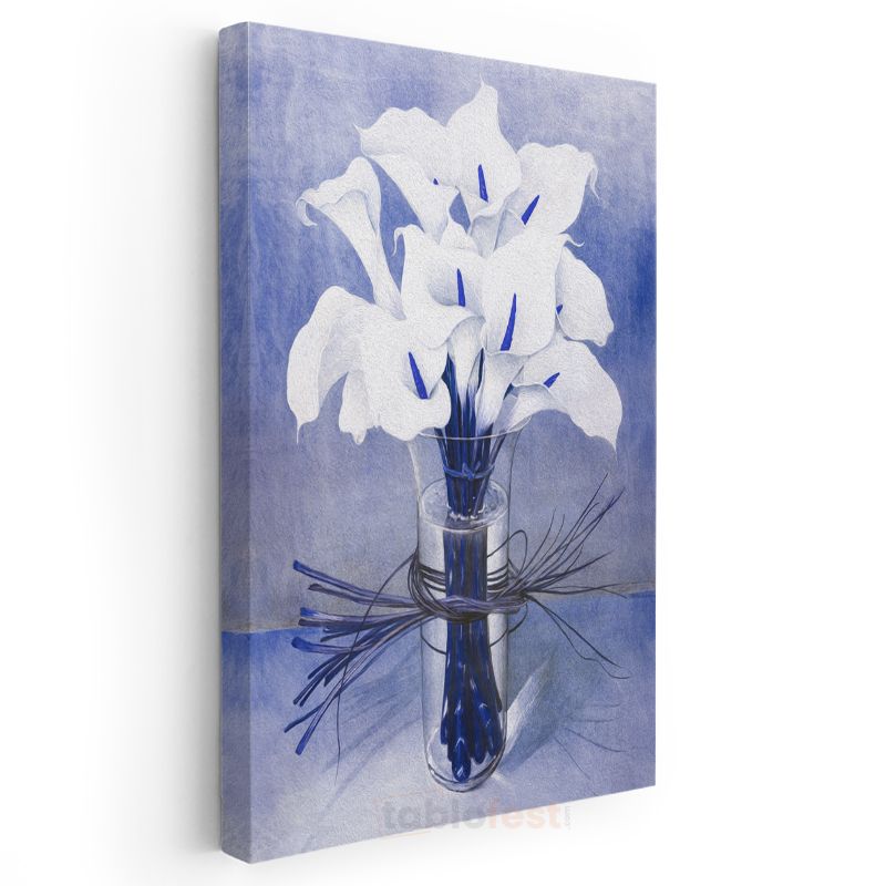 Beyaz Zambaklar - Mavi Fon Üzerinde Zarif Çiçek Aranjmanı Kanvas Tablo