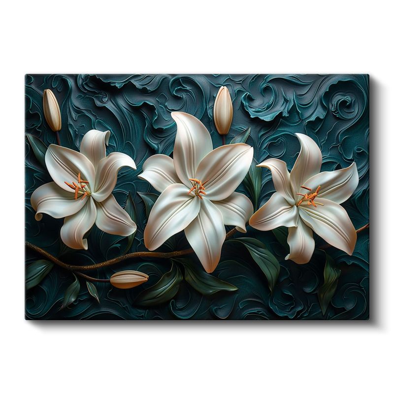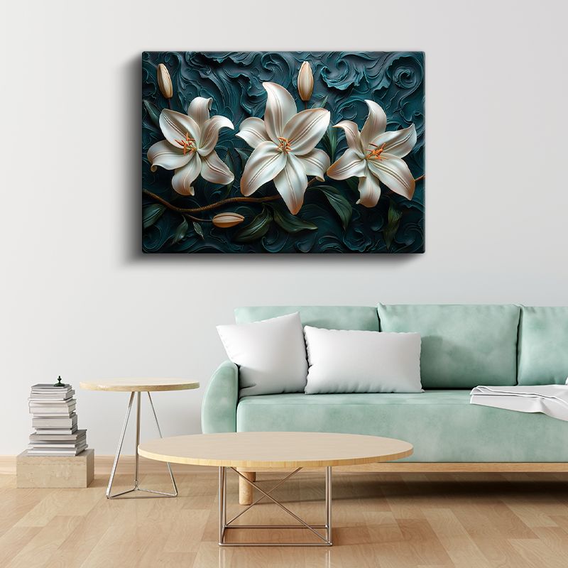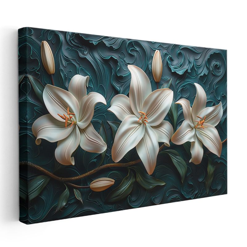 Beyaz Zambaklar - Turkuaz Dalgalı Dokulu Dekoratif Kanvas Tablo