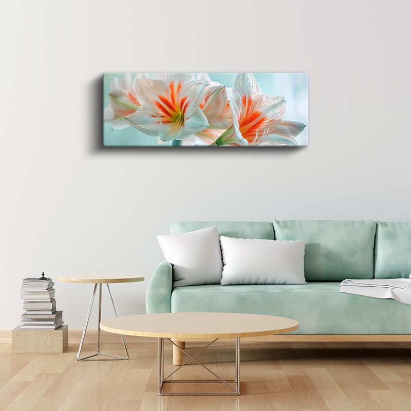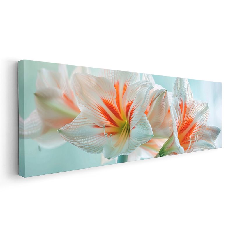 Beyaz Zambaklar - Turuncu Merkezli Zarif Çiçek İkilisi Kanvas Tablo