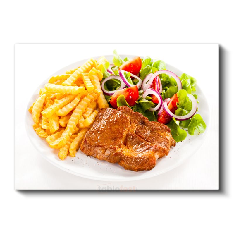 Biftek Tabağı - Patates Kızartması ve Salata Eşliğinde Kanvas Tablo