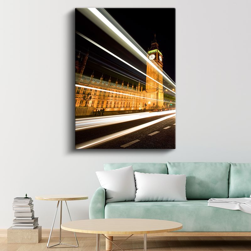 Big Ben - Gece Işık İzleri Kanvas Tablo