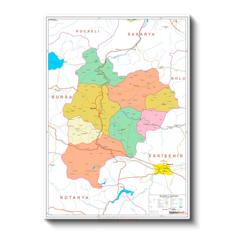 Bilecik - Fiziki Haritası Kanvas Tablo