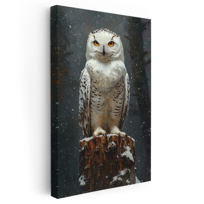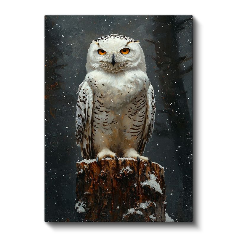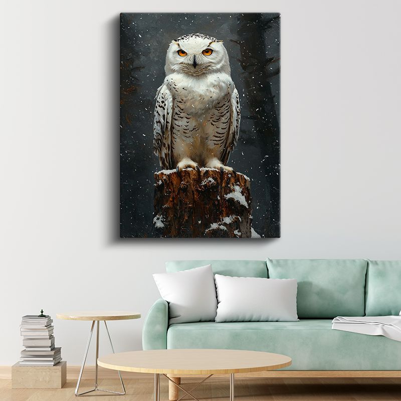 Bilge Baykuş - Kar Taneleri Arasında Turuncu Gözler Kanvas Tablo