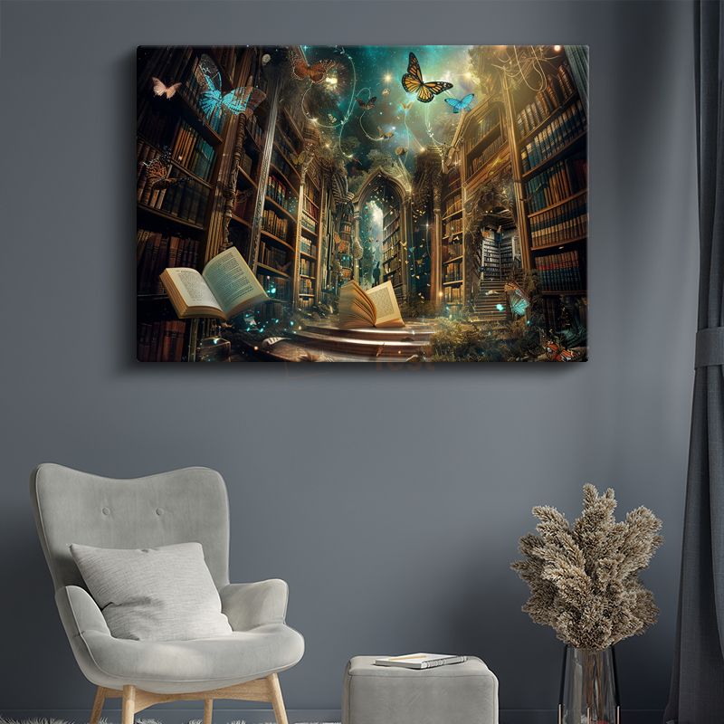 Bilgeliğin Büyüsü - Uçuşan Kitapların Sırrı Kanvas Tablo