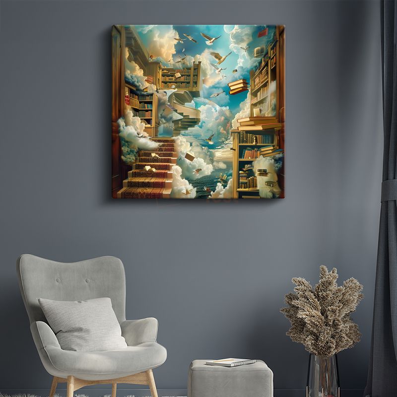 Bilgeliğin Uçuşu - Gökyüzüne Yükselen Kitaplar Kanvas Tablo