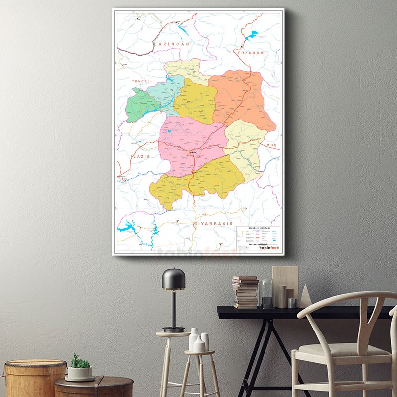 Bingöl - Fiziki Haritası Kanvas Tablo