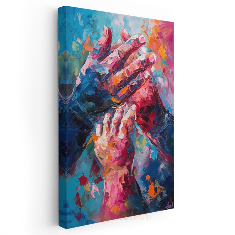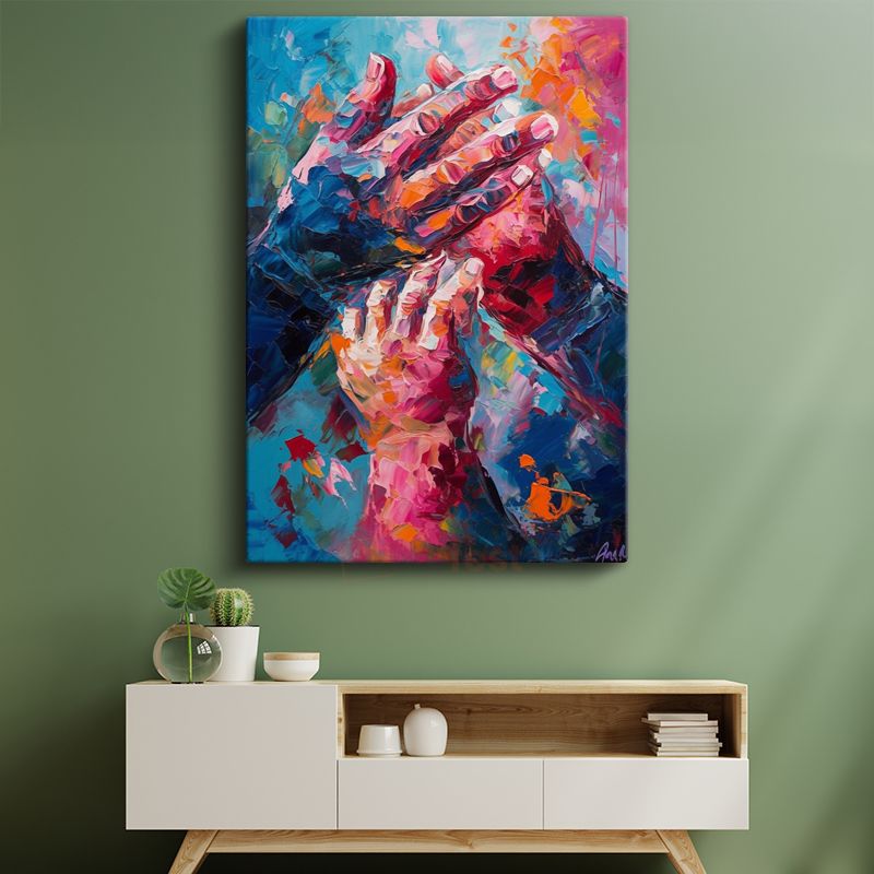 Birleşen Eller - Renkli Ekspresyonist Sanat Kanvas Tablo