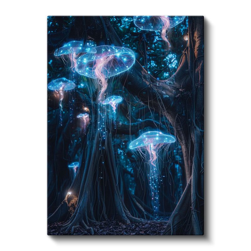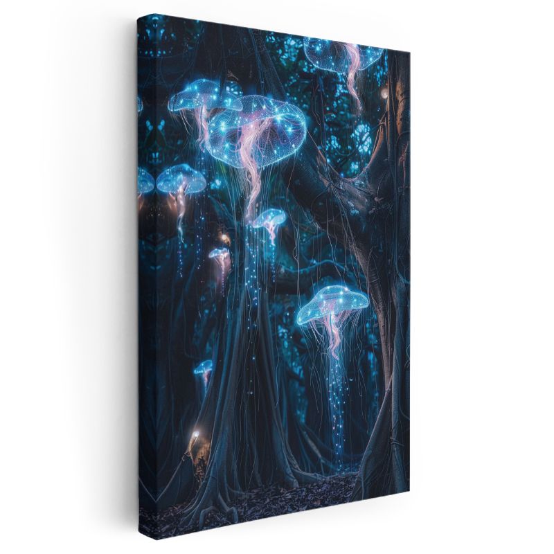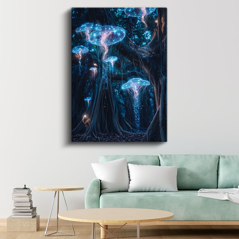 Biyolüminesans Ormanı - Karanlıkta Parlayan Mantarların Dansı Kanvas Tablo