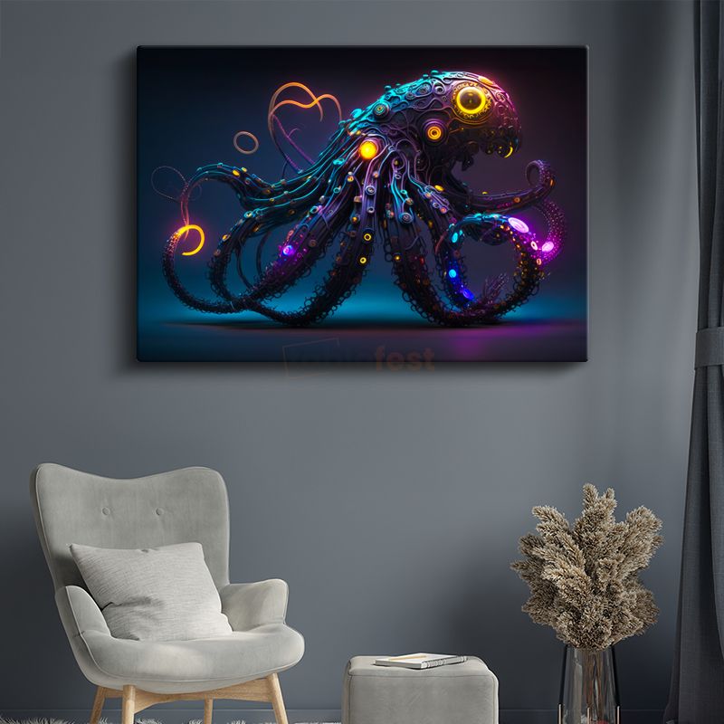 Biyonik Ahtapot - Neon Derinlikler Kanvas Tablo