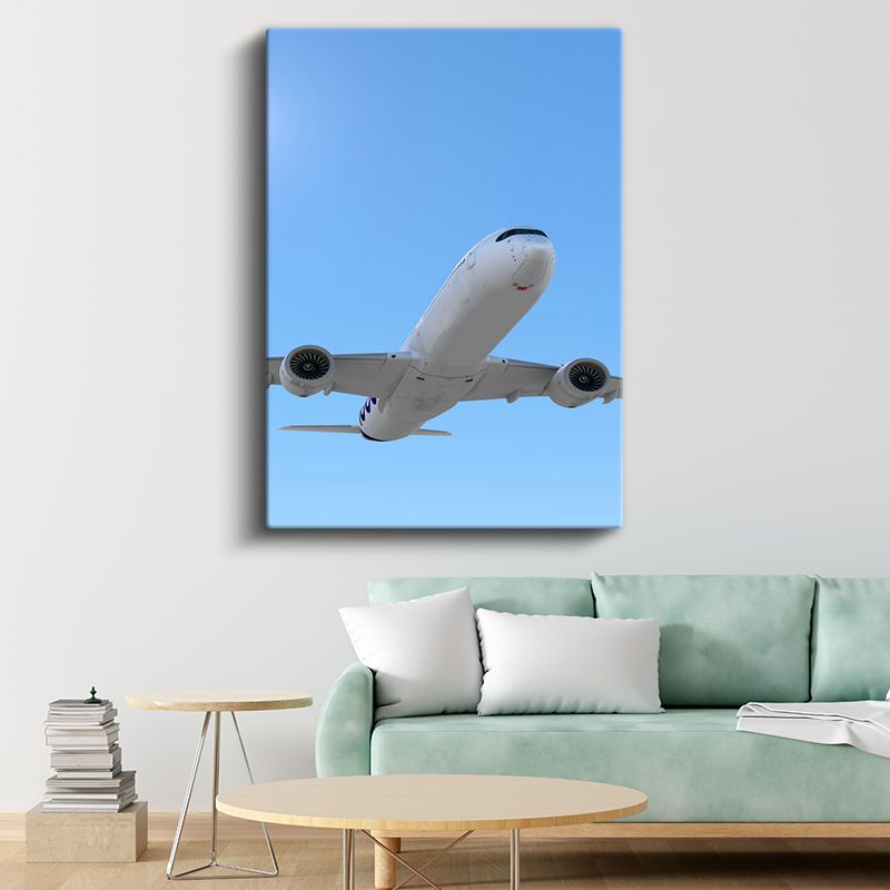 Boeing 777 - Mavi Gökyüzünde Yükselen Yolcu Uçağı Kanvas Tablo