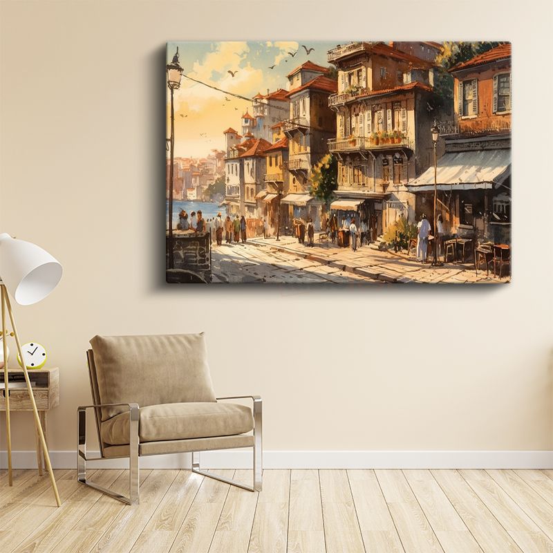 Boğaz Evleri - Güneşli Sokakta Tarihi Yapılar Kanvas Tablo