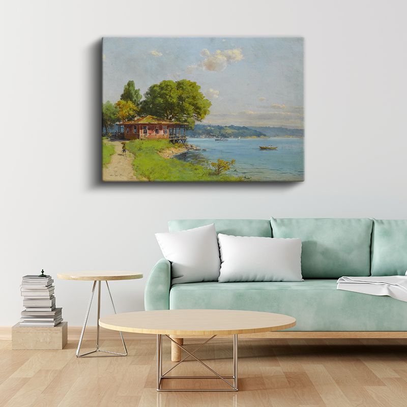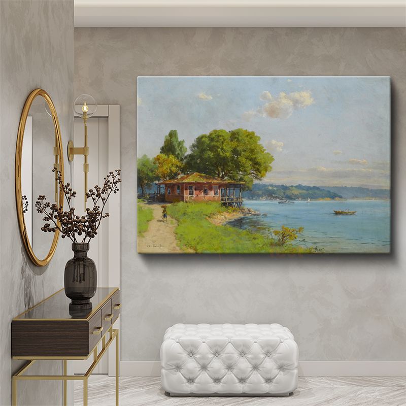 Boğaz Kıyısı - Yalı ve Deniz Manzarası Kanvas Tablo