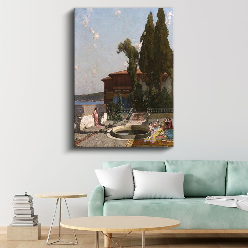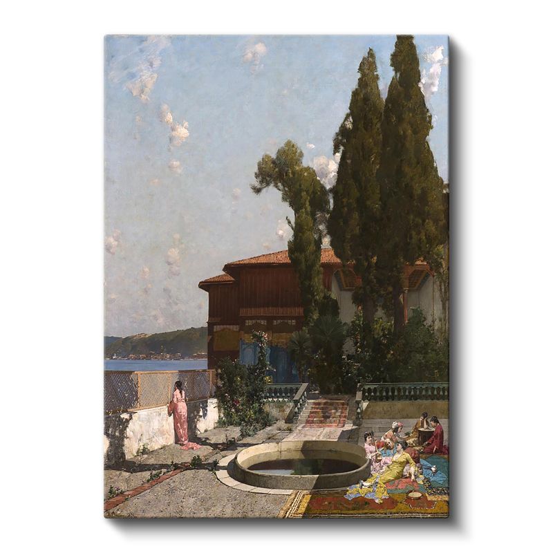 Boğaz Manzarası - Yalı Bahçesinde Gündelik Yaşam Kanvas Tablo