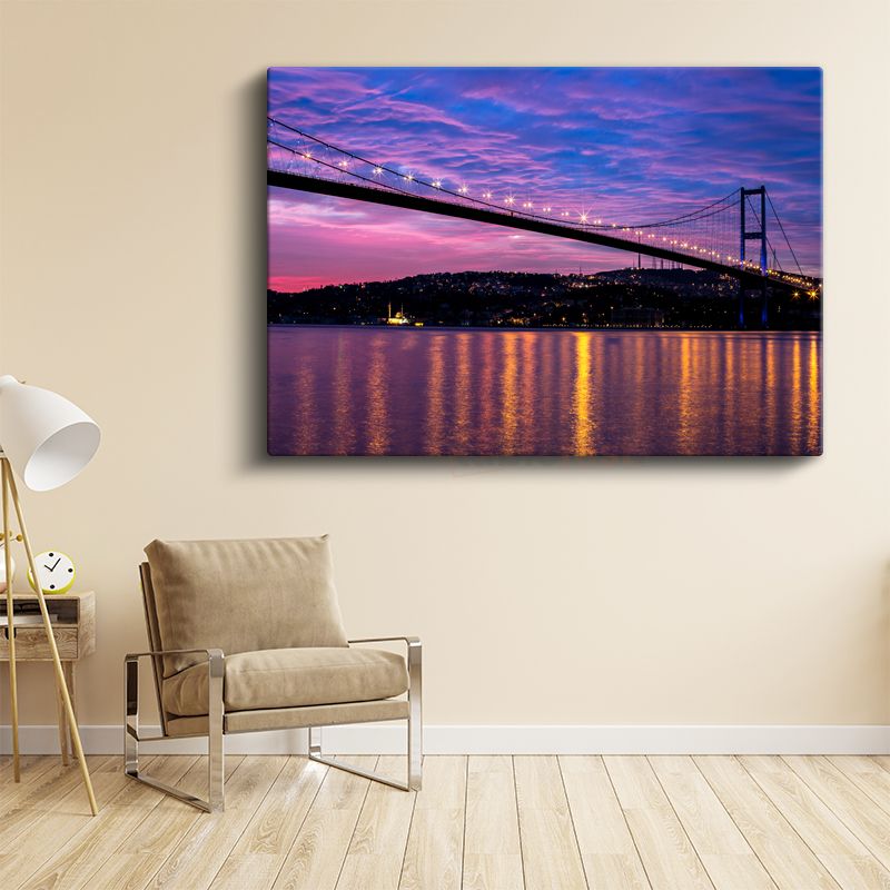 Boğaziçi Köprüsü - Mor Işıklı Gün Batımı Kanvas Tablo