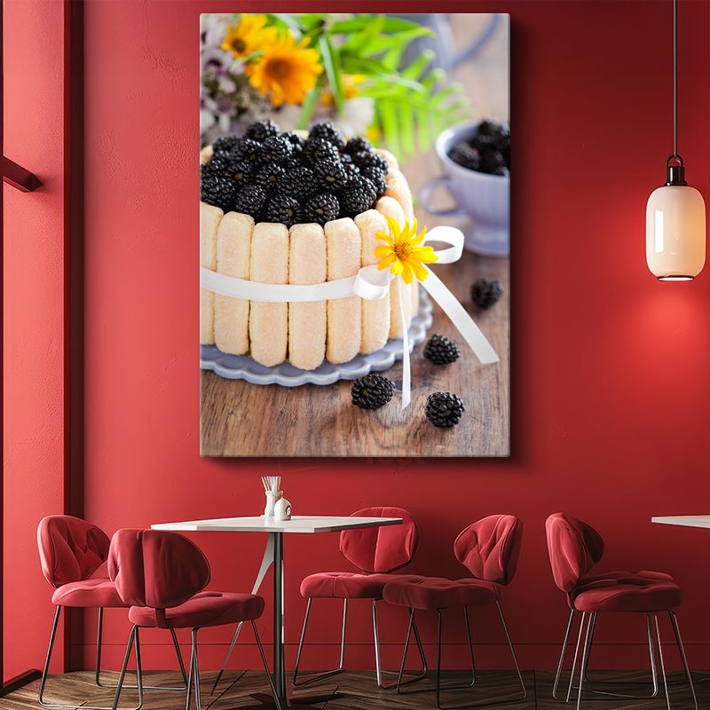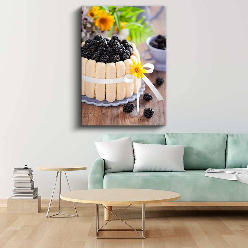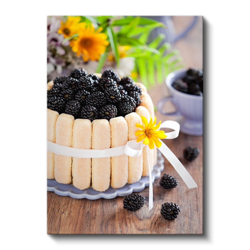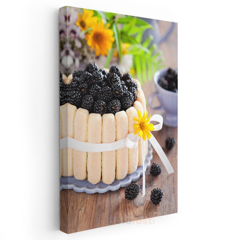 Böğürtlenli Pasta - Taze Meyveli Bisküvi Çerçeveli Tatlı Kanvas Tablo