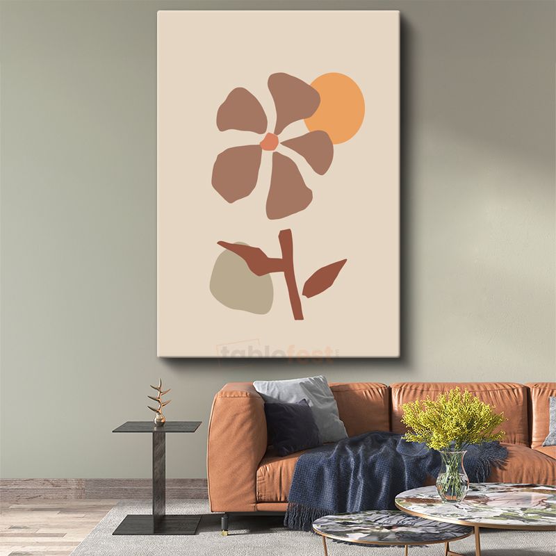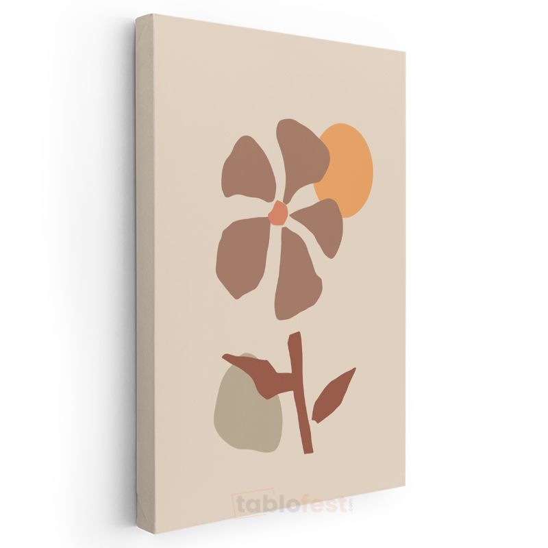 Bohem Çiçek - Toprak Tonlarında Minimalist Botanik Kanvas Tablo