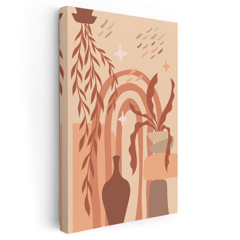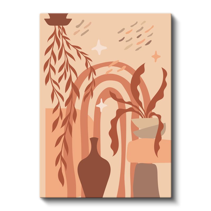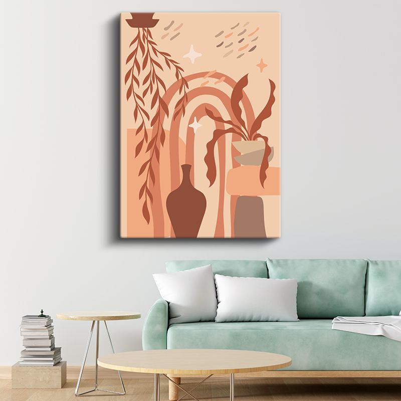 Bohem Harmoni - Minimalist Bitkiler ve Geometrik Formlar Kanvas Tablo