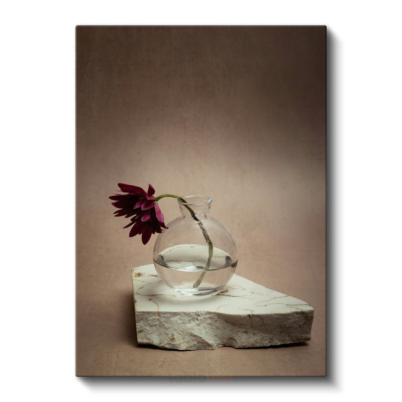 Bordo Gerbera - Minimalist Cam Vazoda Çiçek Kanvas Tablo