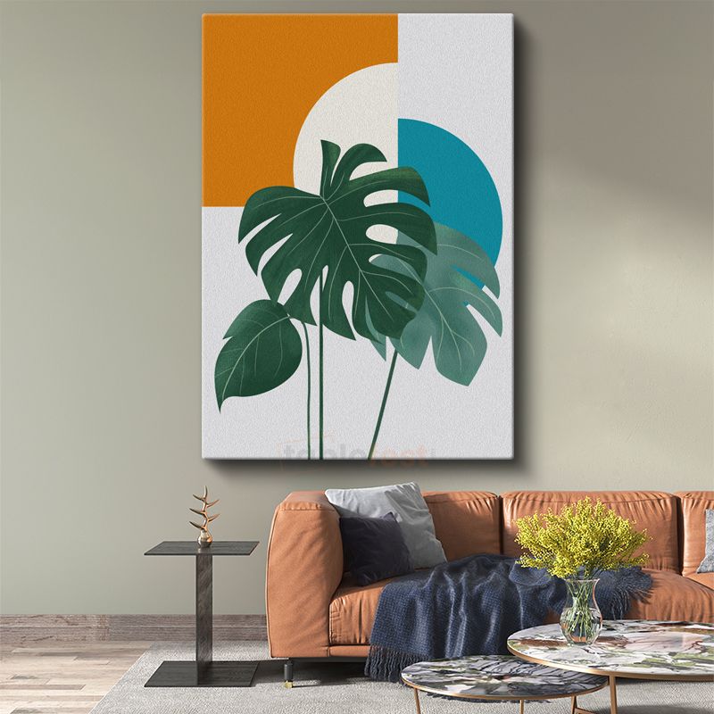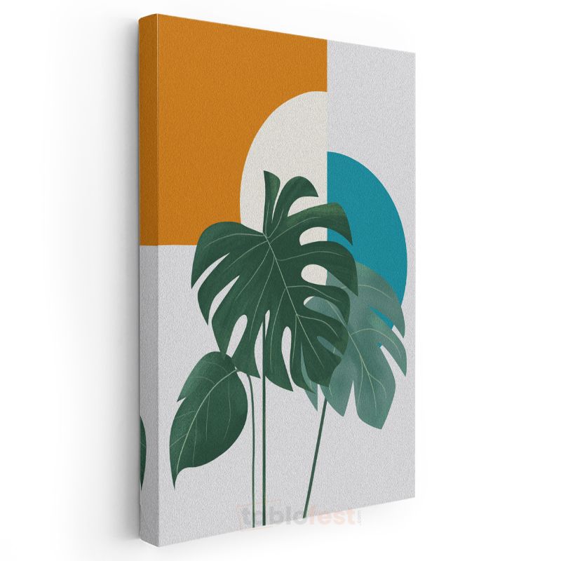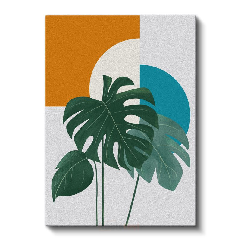 Botanik Desen - Turuncu Turkuaz Geometrik Kanvas Tablo